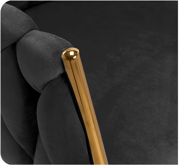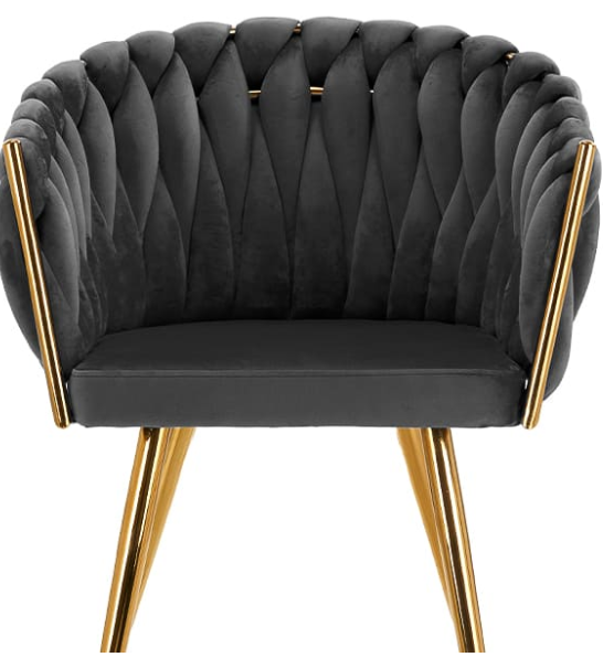 Stolička 4Rico QS-GW06G , čalúnená materiálom príjemným na dotyk, je kombináciou vysokej kvality, pohodlia a funkčnosti, ktorá zaujme svojim luxusným dizajnom. Nábytok s pútavým výpletom na operadle a leštenými prvkami v odtieňoch zlata vyniká jedinečnou eleganciou . Ideálne pre profesionálne kancelárie aj domáce použitie.