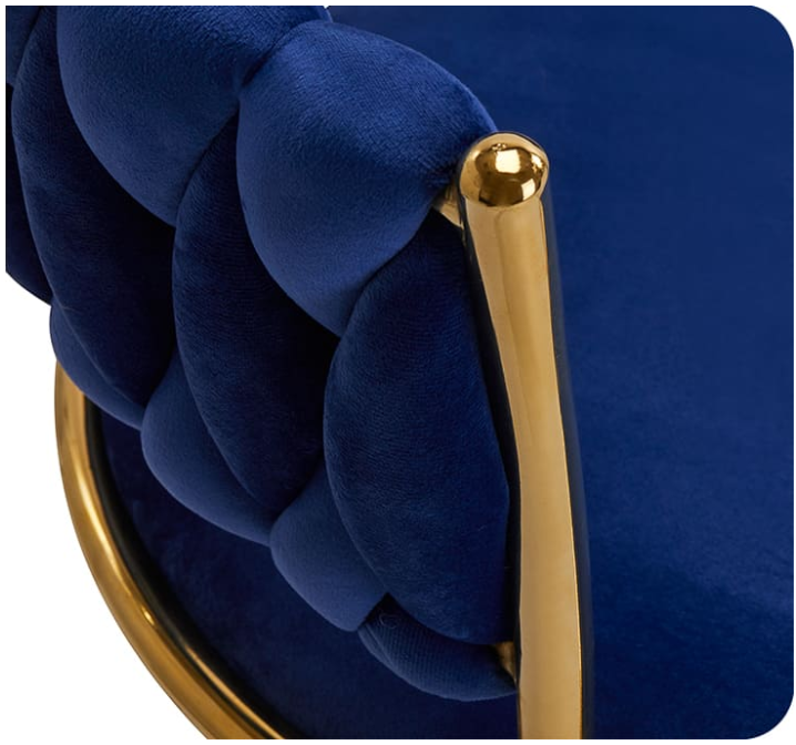 Elegantná stolička 4Rico QS-GW01G s pútavým výpletom na operadle a leštenými prvkami v odtieňoch zlata, čalúnená na dotyk príjemným materiálom, zapadne do každého interiéru. Nábytok vyniká svojou eleganciou a je mimoriadne všestranný - je ideálny pre profesionálne salóny vrátane salónu krásy, nechtového salónu, kancelárie alebo elegantnej recepcie. Je ideálny aj na domáce použitie.