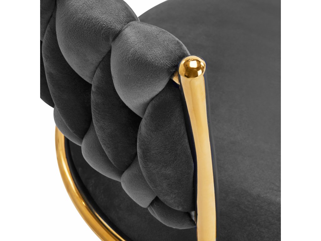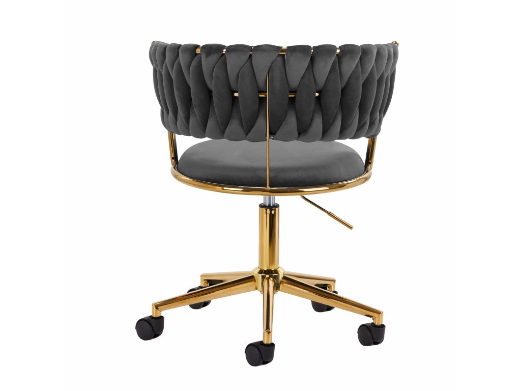 Elegantná stolička 4Rico QS-GW01G s pútavým výpletom na operadle a leštenými prvkami v odtieňoch zlata, čalúnená na dotyk príjemným materiálom, zapadne do každého interiéru. Nábytok vyniká svojou eleganciou a je mimoriadne všestranný - je ideálny pre profesionálne salóny vrátane salónu krásy, nechtového salónu, kancelárie alebo elegantnej recepcie. Je ideálny aj na domáce použitie.