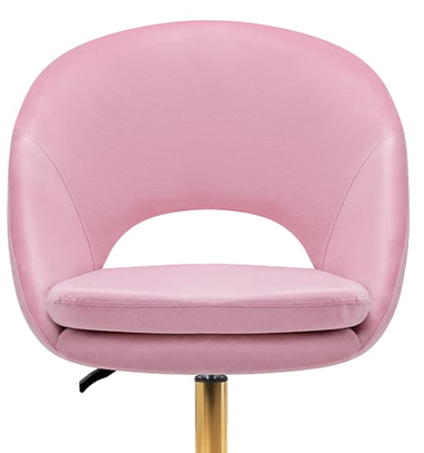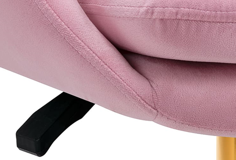 Vďaka jednoduchej povrchovej úprave tento kus nábytku zaujme na prvý pohľad. Na dotyk príjemné zamatové čalúnenie v ružových odtieňoch mu dodáva jedinečný charakter. Podstavec v zlatej farbe dodáva eleganciu a dokonale splýva so zamatom, zatiaľ čo funkčné kolieska zabezpečujú mobilitu, vďaka čomu je možné kreslo ľahko premiestňovať a pohybovať sa po obývacej izbe počas práce. Estetika spracovania, pohodlie pri používaní a ergonomicky profilované operadlo znamenajú, že kreslo splní požiadavky aj tých najnáročnejších používateľov.