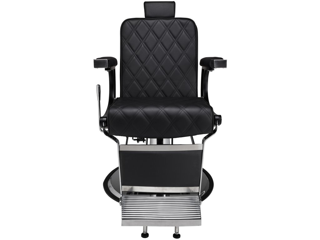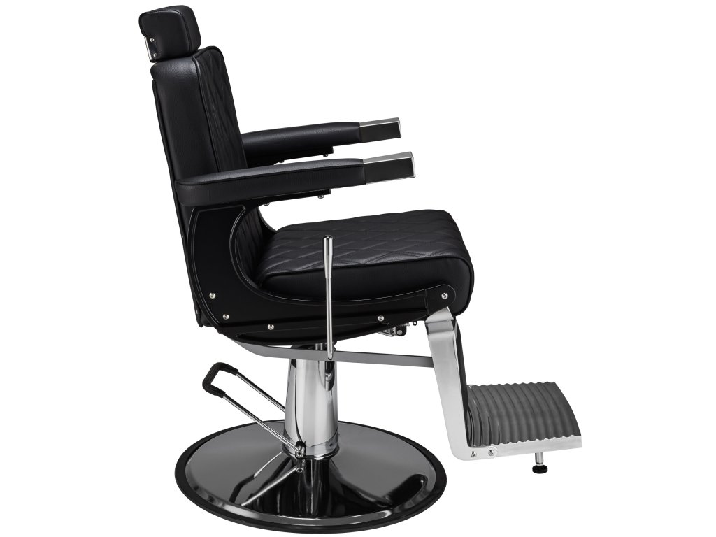 Holičské kreslo Duke v čiernej farbe v kombinácii s chrómovými detailmi vyzerá exkluzívne v každom holičstve.