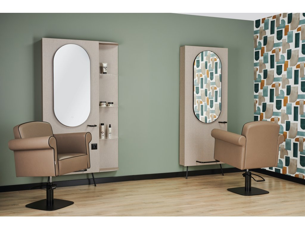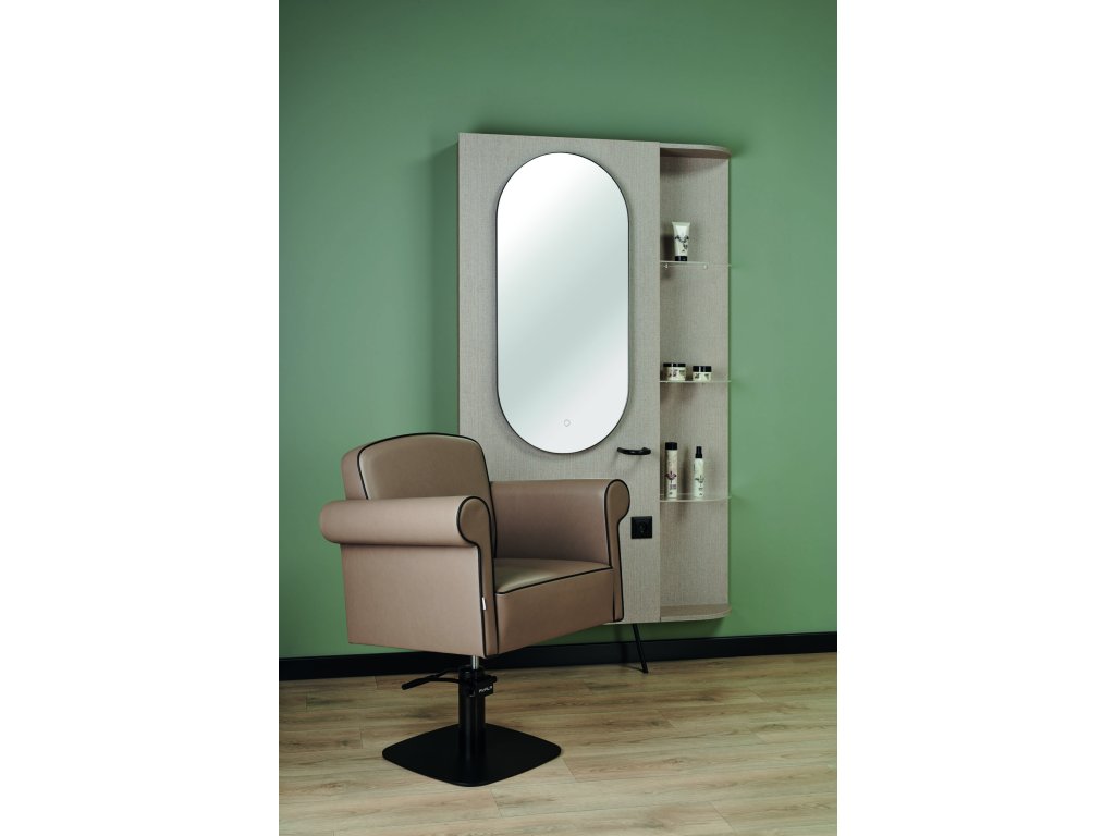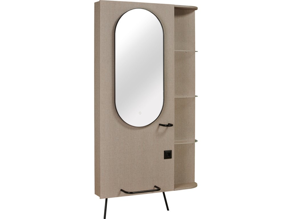 Kadernícka stena je vybavená tromi osvetlenými sklenenými policami a je univerzálna - na montáž na pravú alebo ľavú stranu steny.
