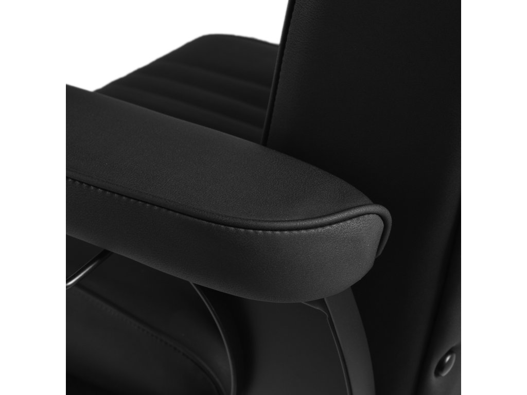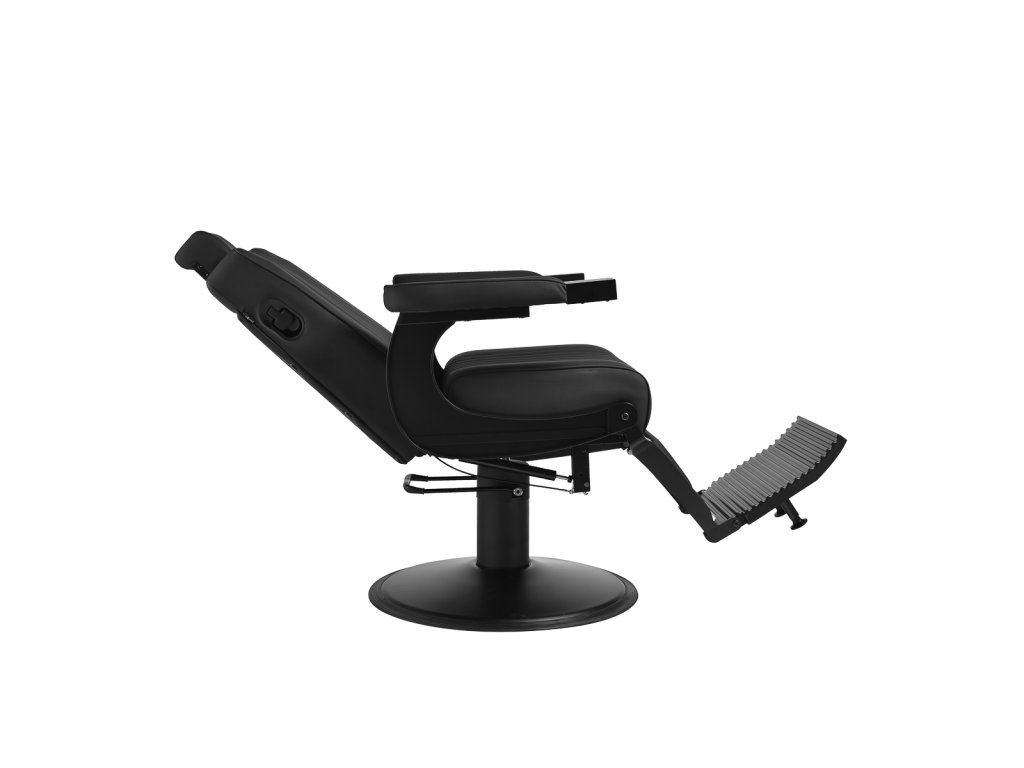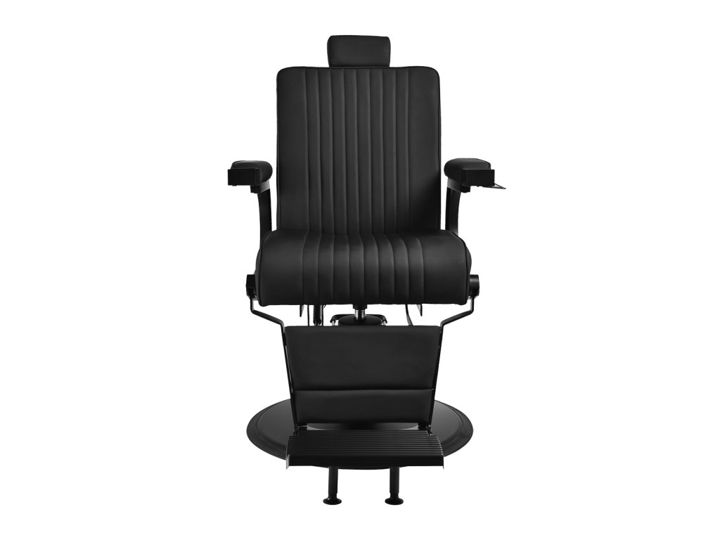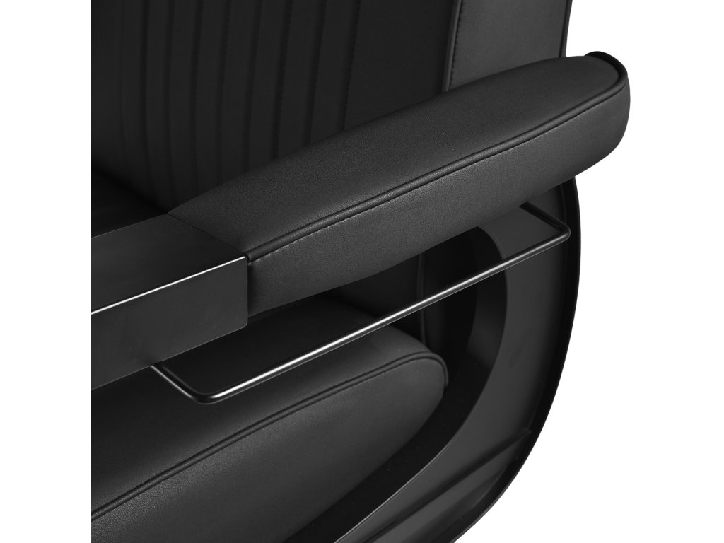 Konštrukcia kresla je vyrobená z odolnej ocele v čiernej farbe a stojí na stabilnej okrúhlej základni, ktorá zaisťuje pevnosť a dlhú životnosť. Čalúnenie z matnej syntetickej kože v elegantnom čiernom odtieni je odolné voči vlhkosti a ľahko sa čistí, takže kreslo zostáva dlhodobo v skvelom stave. Spojenie čiernej farby čalúnenia aj konštrukcie dodáva kreslu výrazný a profesionálny vzhľad, ktorý skvele zapadne do moderných pánskych salónov.