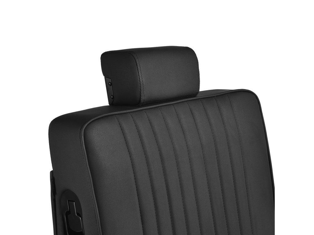 Mäkká výplň sedadla a ergonomicky tvarované operadlo poskytujú klientovi pohodlie aj pri dlhších procedúrach, zatiaľ čo čalúnené podrúčky v správnej výške zaisťujú uvoľnené držanie ramien. Kreslo je plne otočné, čo uľahčuje prístup zo všetkých strán a zefektívňuje prácu. Praktický držiak na uterák pod ľavou podrúčkou šetrí čas a zlepšuje organizáciu práce.