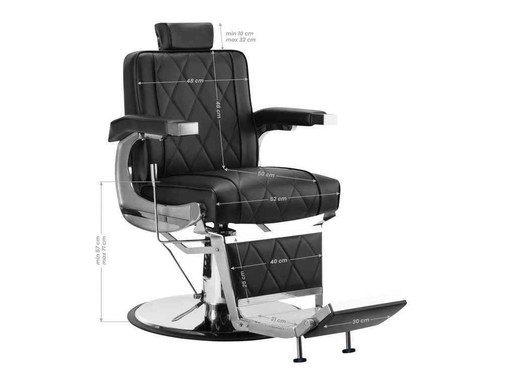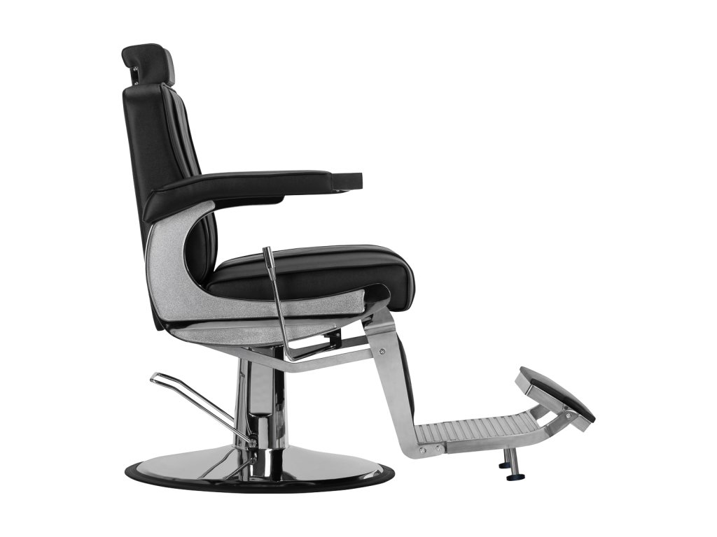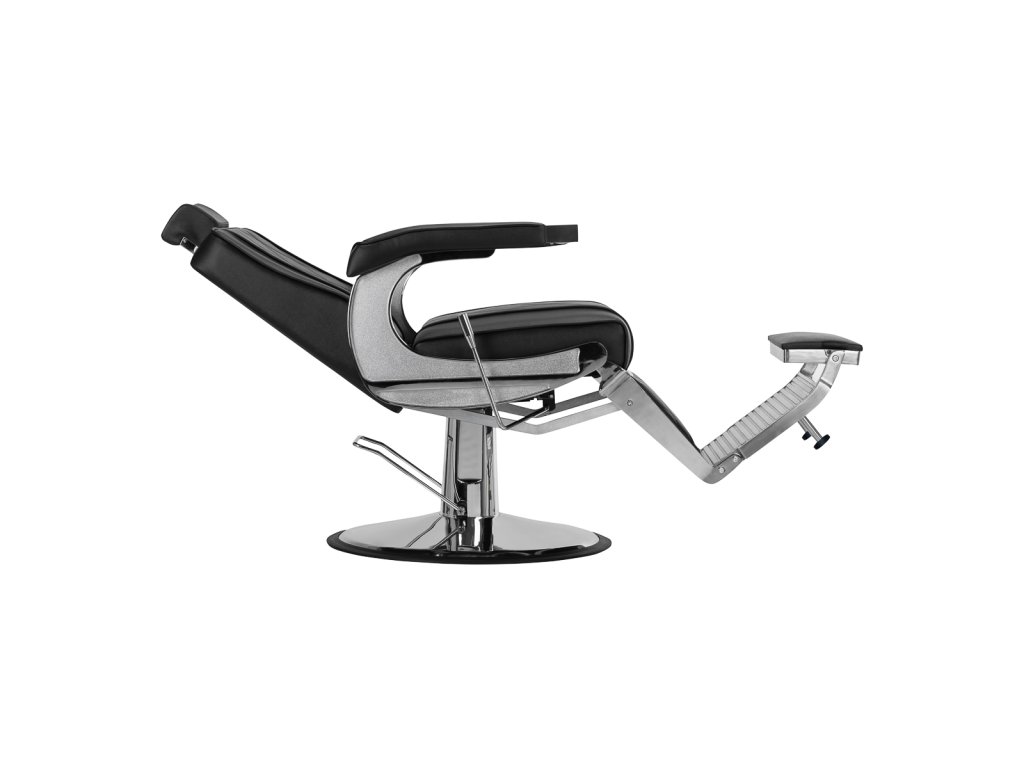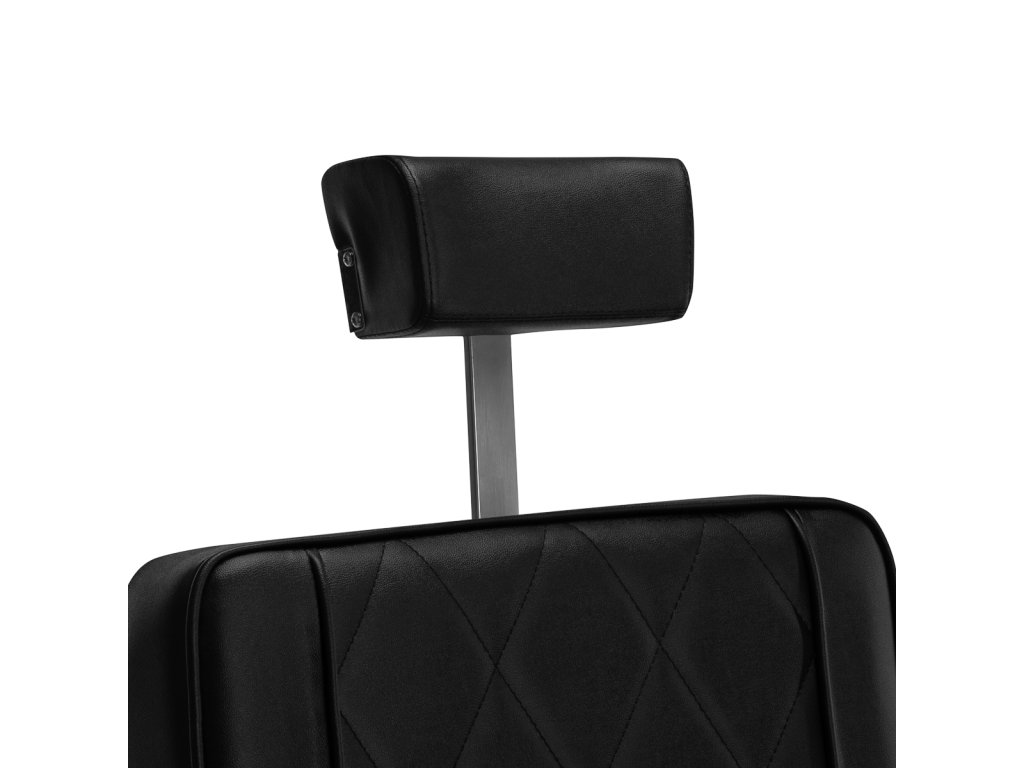 Jedná sa o moderný, dokonale spracovaný kus nábytku, ktorý zákazníkovi salónu dopraje maximálny pocit pohodlia pri vykonávaných ošetreniach. Kreslo má okrem nastavenia hore-dole sklopné operadlo a polohovateľnú podnožku. Aj napriek malým rozmerom je možné klienta umiestniť do pohodlnej, polohovateľnej polohy. Pohodlné sedadlo je potiahnuté kvalitnou ekokožou. Široká, chrómovaná základňa zaručuje stabilitu nábytku pri prevádzke. Ďalšou výhodou je možnosť jednoduchého nastavenia opierky hlavy. Čierny nábytok.
