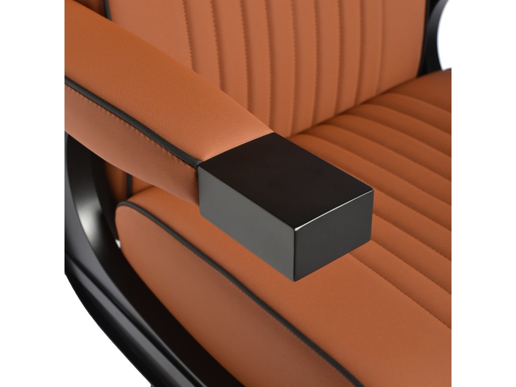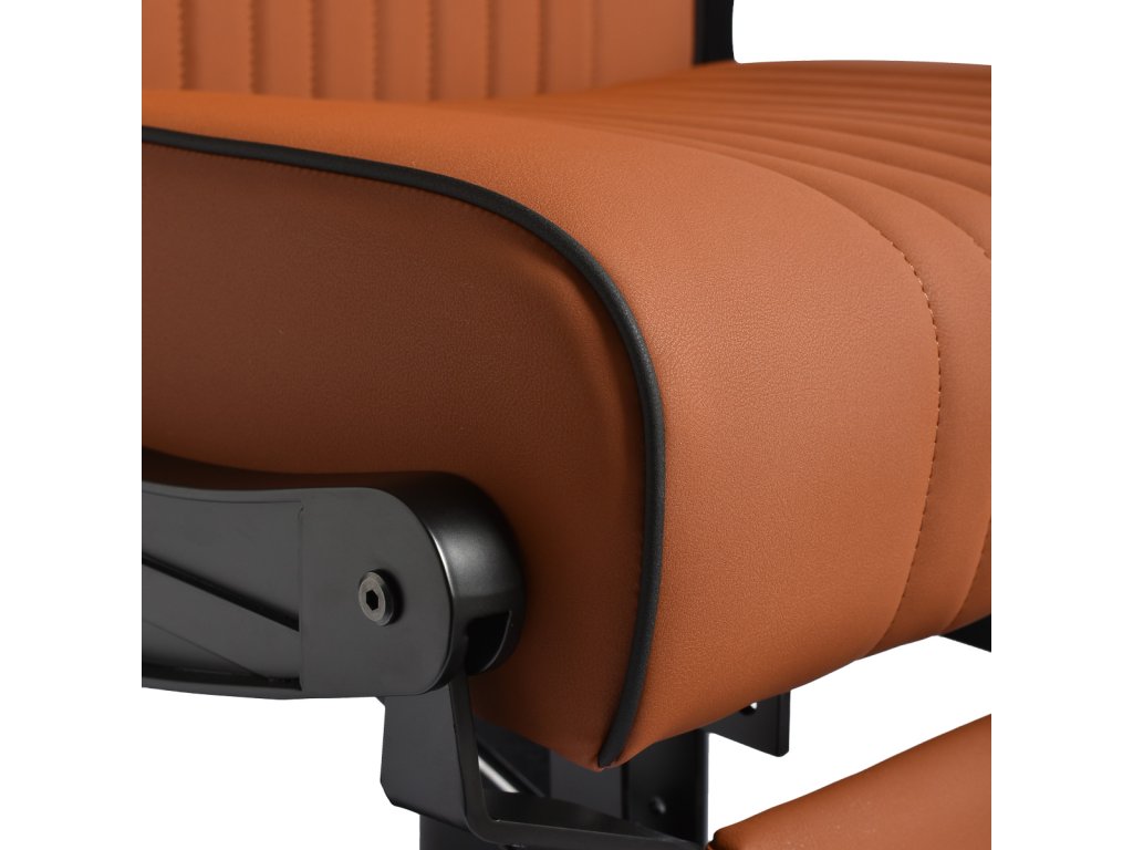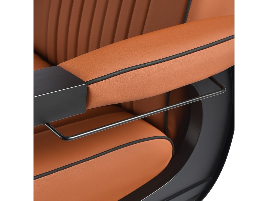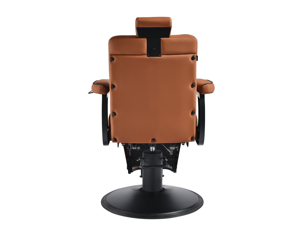 Konštrukcia kresla je vyrobená z odolnej ocele v čiernej farbe a stojí na stabilnej okrúhlej základni, ktorá zaisťuje pevnosť a dlhú životnosť. Čalúnenie z matnej syntetickej kože v elegantnom hnedom odtieni je odolné voči vlhkosti a ľahko sa čistí, takže kreslo zostáva dlhodobo v skvelom stave. Spojenie hnedej farby čalúnenia a čiernej konštrukcie dodáva kreslu štýlový a profesionálny vzhľad, ktorý skvele zapadne do moderných pánskych salónov.