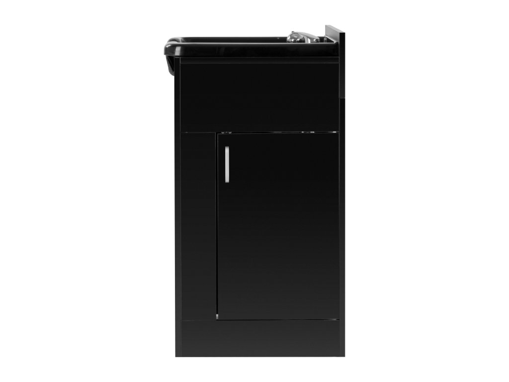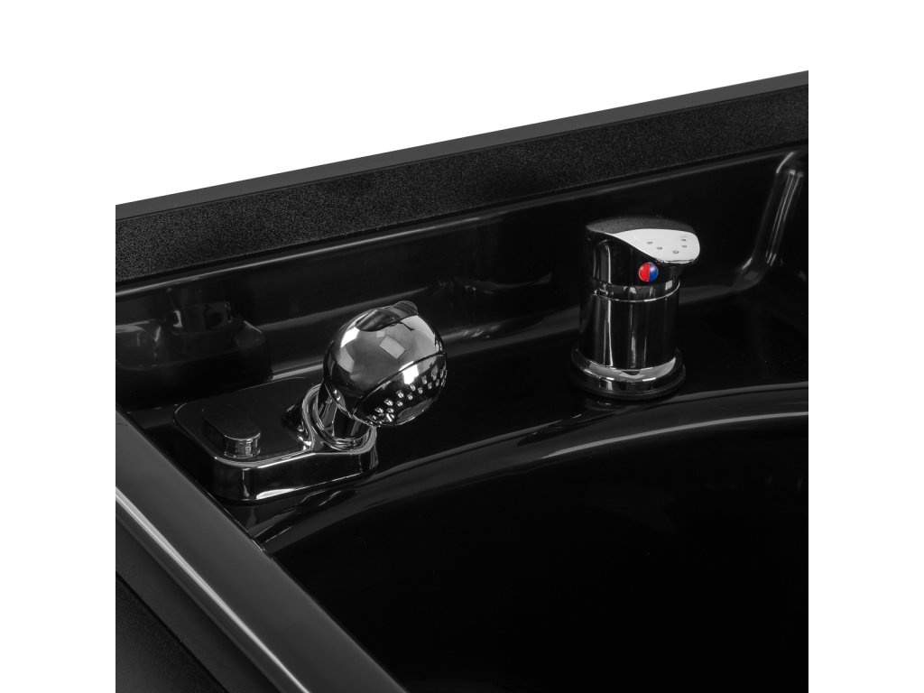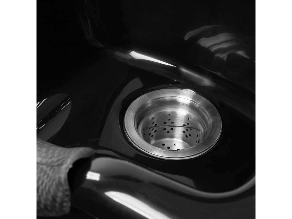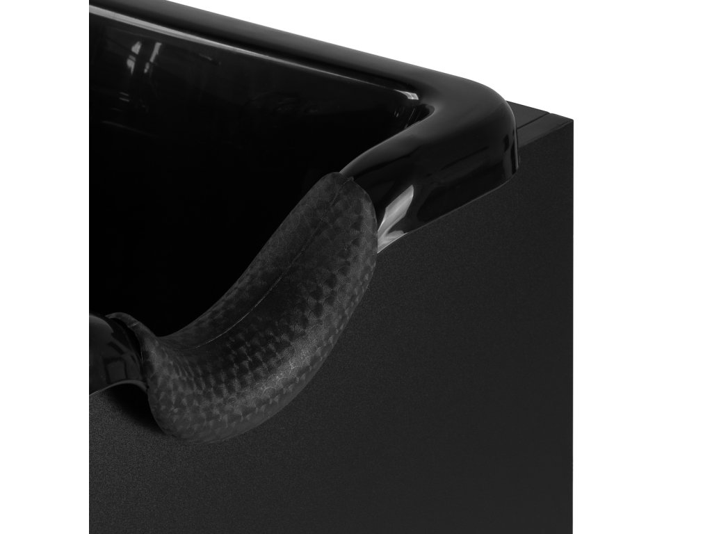 Hlboká misa z odolného plastu v čiernej farbe je tvarovaná tak, aby obmedzila rozstrekovanie vody aj prípravkov. Vďaka ergonomickému tvaru a vyprofilovanému golieru s mäkkou silikónovou opierkou hlavy zostáva hlava klienta pohodlne podopretá počas celej procedúry.