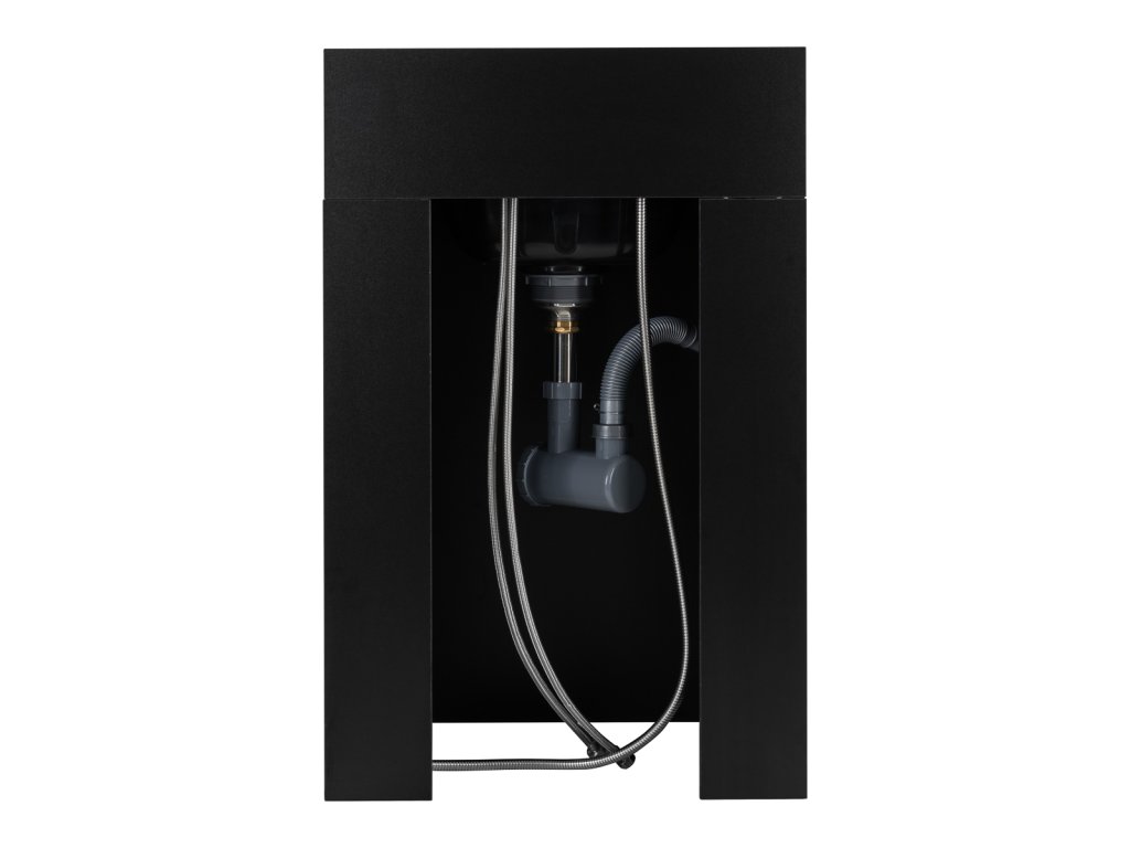 Vo spodnej časti stanice sa nachádzajú bočné dvierka, ktoré uľahčujú prístup k inštalácii a zároveň slúžia ako diskrétny úložný priestor na potrebné produkty. Zadný otvor na pripojenie vody umožňuje viesť potrubie a odpad esteticky a udržať tak čistý a profesionálny vzhľad.