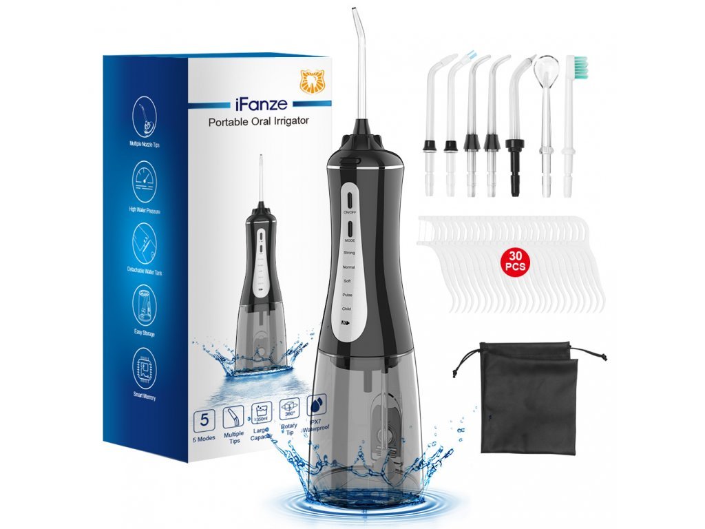 - Veľká nádrž na 350 ml: kapacita nádrže na vodu je väčšia ako u väčšiny podobných produktov na trhu. Umožňuje dlhšie čistenie zubov jednou náplňou. Špičky je možné pre ľahkú prenosnosť uložiť do nádrže.