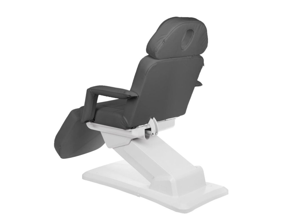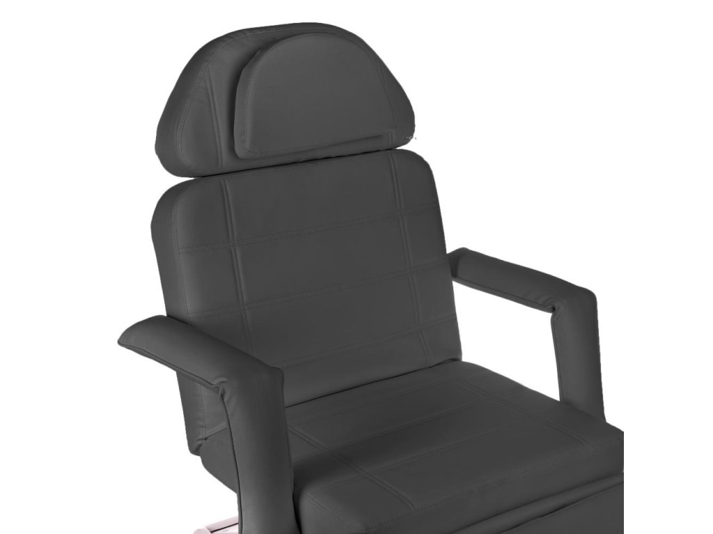 Vysoko kvalitné čalúnenie zo šedej eko kože vyzerá elegantne a moderne, zároveň je odolné a ľahko sa udržiava v čistote. Mäkké vankúše z pružnej peny poskytujú klientom pohodlie aj počas dlhších procedúr. Odnímateľné podrúčky zaisťujú flexibilitu pri práci a umožňujú lepší prístup počas procedúr. Stabilná konštrukcia a nosnosť až 160 kg zaručujú spoľahlivosť pri každodennom profesionálnom používaní.