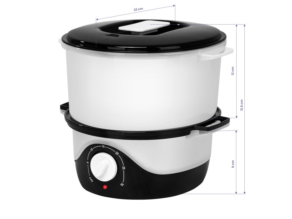 Tento model vyniká rýchlym ohrevom, ktorý dosahuje maximálnu teplotu za krátku dobu, čo z neho robí ideálnu voľbu pre profesionálov, ktorí chcú pracovať efektívne. Časovač umožňuje nastaviť dobu ohrevu na 5, 10, 15, 20, 25 alebo 30 minút, po uplynutí ktorých sa zariadenie automaticky vypne, čím je zaručená úplná bezpečnosť používania. Vodu možno ľahko doplniť buď z hornej časti nádoby, alebo cez bočné vtoky. LED indikátor a označenia minimálnej a maximálnej hladiny naplnenia prispievajú k jednoduchému používaniu.