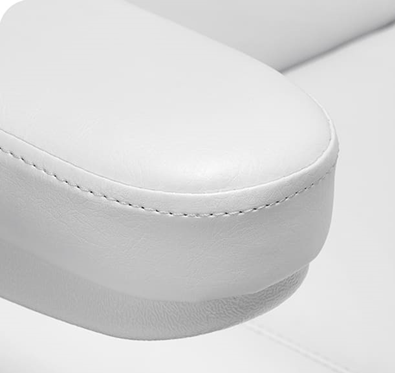 Kreslo je vyplnené tvarovanou penou a potiahnuté syntetickou kožou príjemnou na dotyk v odtieňoch bielej farby. Vďaka použitému materiálu sa zariadenie ľahko čistí a je odolné voči vlhkosti a vybraným dezinfekčným prostriedkom. Pevná základňa z odolného materiálu v odtieňoch bielej farby zabezpečuje stabilitu počas ošetrovania. Vhodne tvarované lemy dodávajú kreslu štýlový vzhľad a umožňujú ergonomické sedenie. Minimalistický, jednoduchý dizajn a klasická farebná schéma umožňujú, aby sa hodila do každého interiéru.