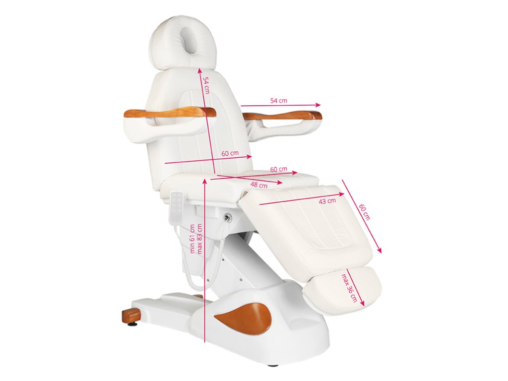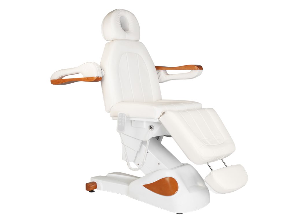 Elektrická kosmetická židle 2323 je kombinací funkčnosti, mimořádného vzhledu a solidního zpracování. Ekologická kůže a dřevěné povrchy vypadají mimořádně.