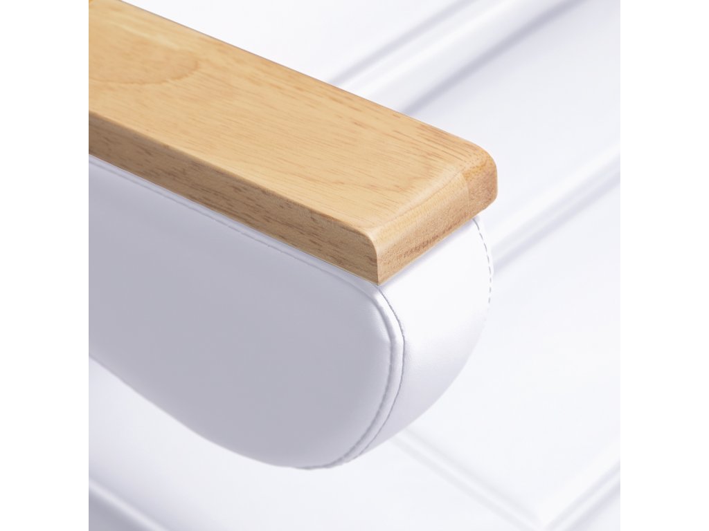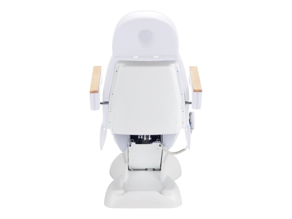 - Široké sedadlo s pevným penovým polstrovaním a syntetickým koženým čalúnením zaručuje maximálny komfort aj počas dlhších procedúr. Otočné a odnímateľné podrúčky uľahčujú nastupovanie a poskytujú kozmetičke pohodlný prístup. Vysúvateľná opierka hlavy a možnosť úplného sklopenia stoličky z nej robia univerzálny kus vybavenia vhodný na ošetrenie tváre aj tela, vrátane kozmetiky, fyzioterapie a tetovania.