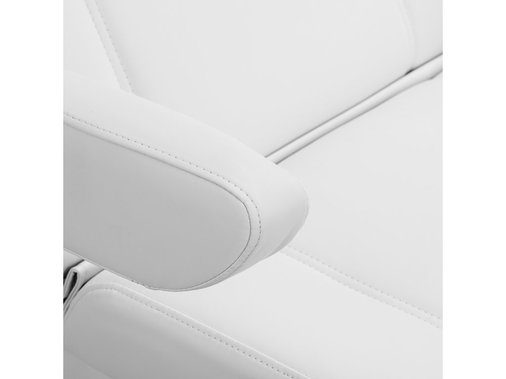 Čalúnenie z mäkkej syntetickej kože je odolné voči vlhkosti a jednoducho sa udržiava. Elegantný biely odtieň dodáva kreslu profesionálny a čistý vzhľad, ktorý sa hodí do každého moderného salónu krásy.