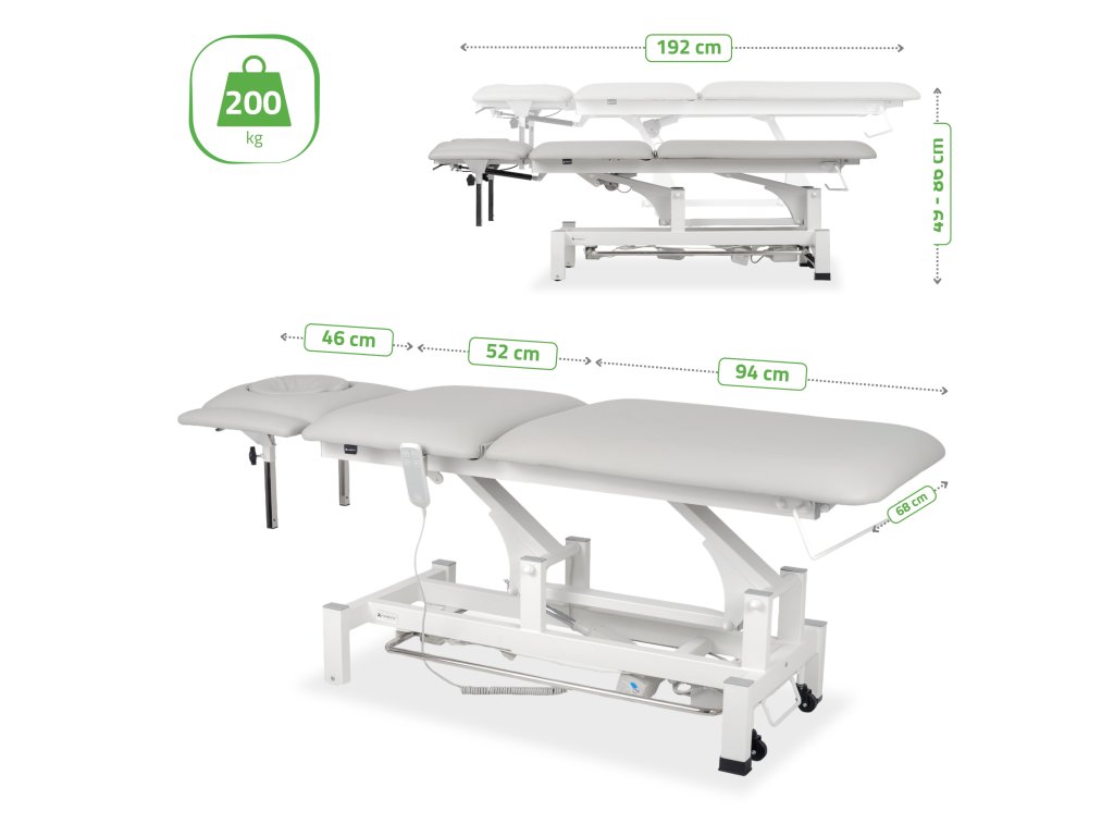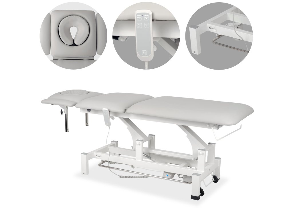 Elektrické terapeutické lehátko Axis5 Ergo – svetlosivé (k729) je moderné profesionálne vybavenie určené pre masážne salóny, fyzioterapeutické centrá a rehabilitačné kliniky. Kombinuje ergonomický dizajn, tichý elektrický chod a precízne polohovanie, vďaka čomu poskytuje maximálne pohodlie klientom aj terapeutom.