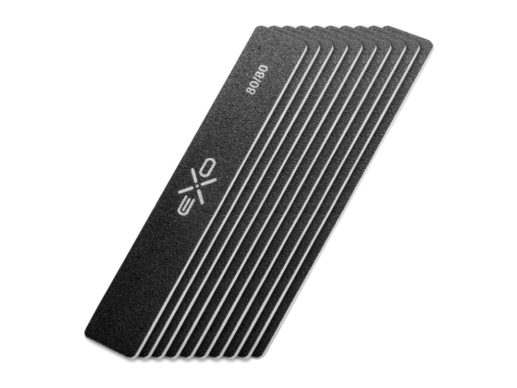 Profesionálny pilník EXO je nevyhnutným produktom pre základnú prácu nechtového stylistu. Pilník na nechty s odstupňovaním 80/80 a klasickým rovným tvarom - jedná sa o široký pilník s hrubým odstupňovaním určený na úpravu a prípravu prírodnej nechtovej platničky na manikúru. Univerzálny rovný tvar s jemne zaoblenými okrajmi umožňuje presné manévrovanie okolo kožičky bez toho, aby ju poškodil. Moderná, vylepšená konštrukcia papierového zakladača vyrobená z najkvalitnejších materiálov je zárukou dlhej životnosti.