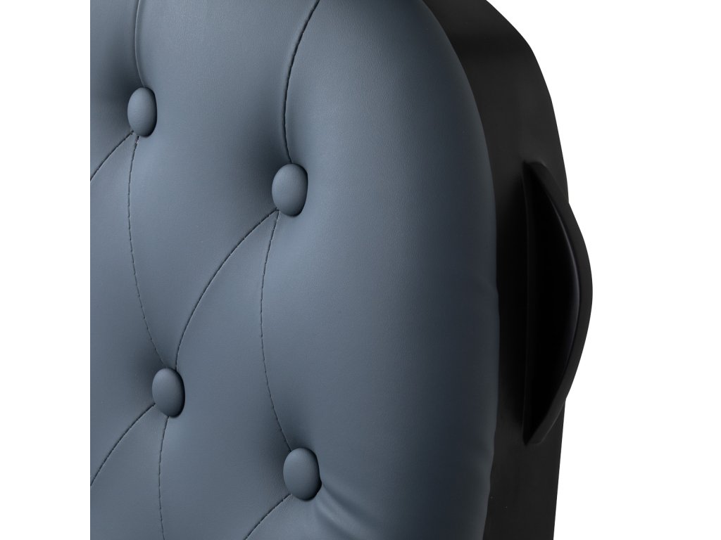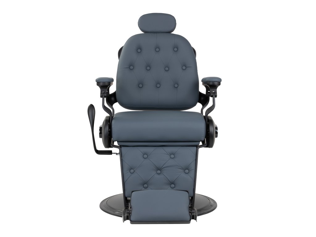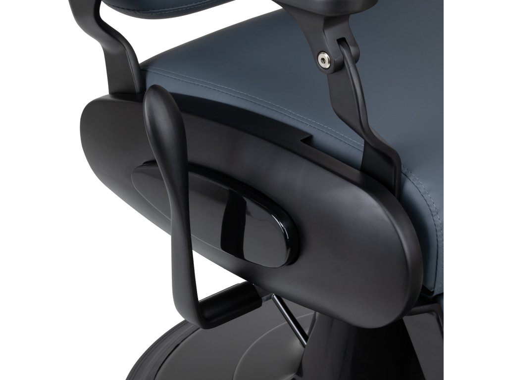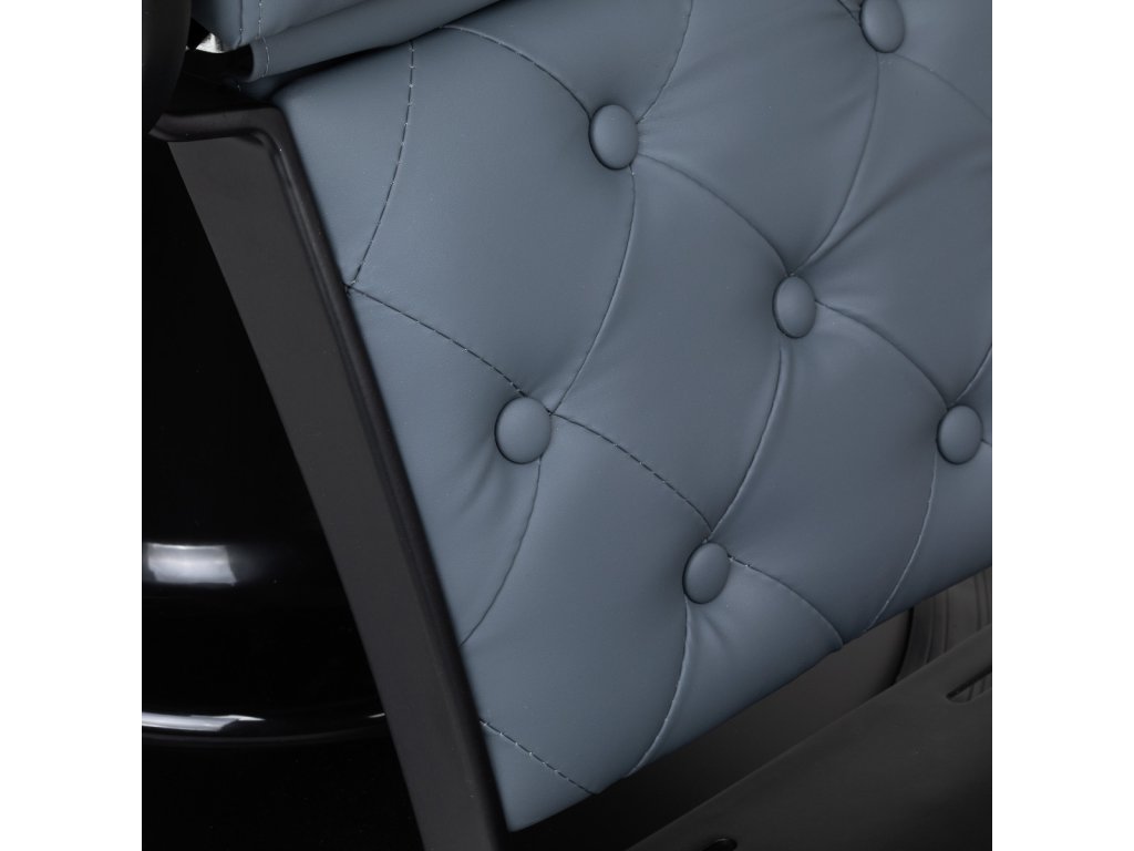 Stabilná konštrukcia základne s čiernymi prvkami zaisťuje vysokú úroveň pohodlia. Odolná výplň z peny odolnej voči deformácii a čalúnenie z mäkkého syntetického koženého materiálu zaisťujú odolnosť nábytku a pohodlné používanie po dlhú dobu. Vďaka týmto vlastnostiam je zariadenie tiež odolné voči vlhkosti, trvácne a ľahko sa čistí. Čalúnenie v grafitovej farbe spolu s originálnym prešívaním a ozdobnými gombíkmi mu dodávajú jedinečný charakter. Dizajnové prvky inšpirované motocyklami, odkazujúce na vintage štýl, dokonale zapadajú do atmosféry holičstva a vytvárajú úžasnú atmosféru.