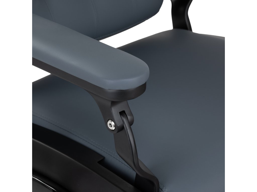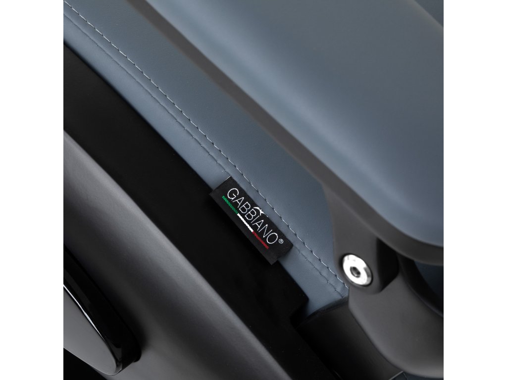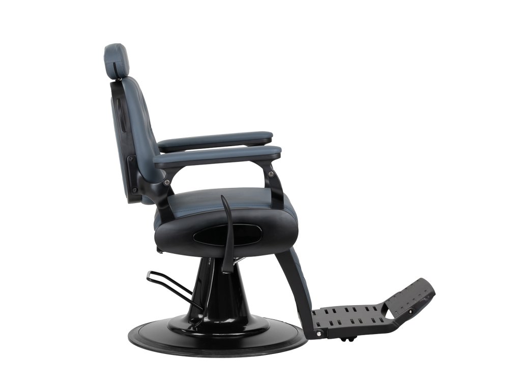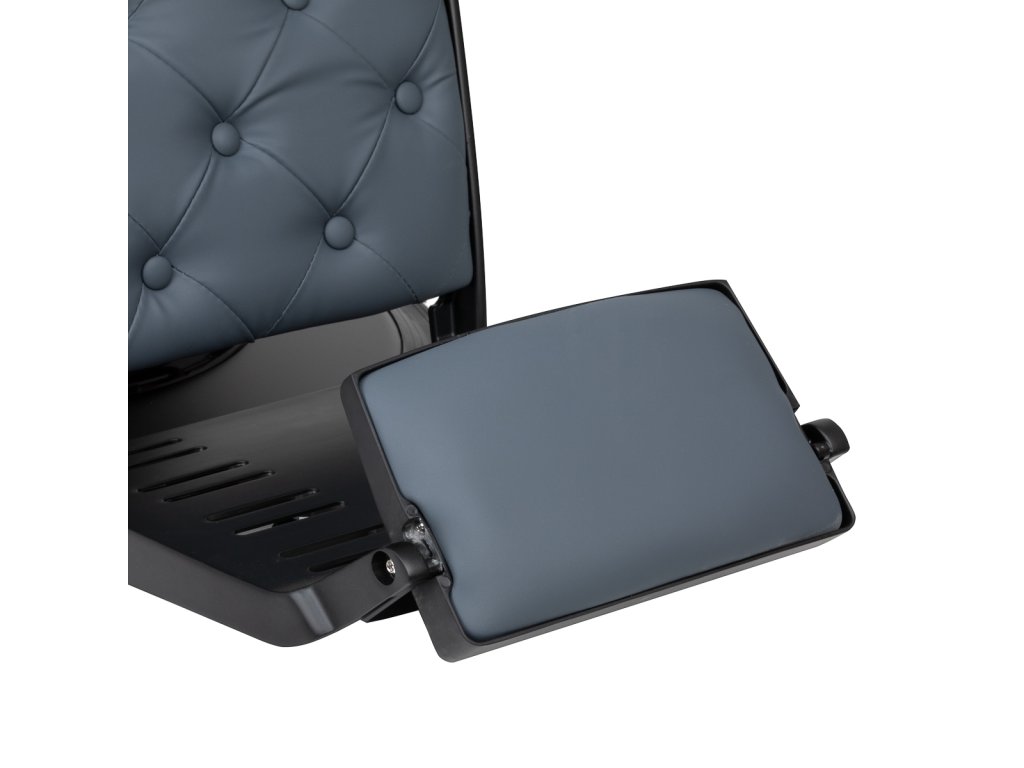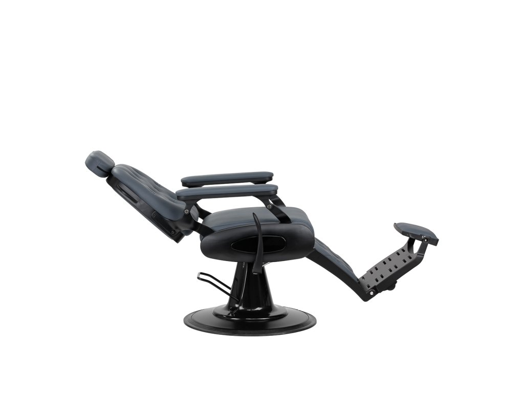 Stabilná konštrukcia základne s čiernymi prvkami zaisťuje vysokú úroveň pohodlia. Odolná výplň z peny odolnej voči deformácii a čalúnenie z mäkkého syntetického koženého materiálu zaisťujú odolnosť nábytku a pohodlné používanie po dlhú dobu. Vďaka týmto vlastnostiam je zariadenie tiež odolné voči vlhkosti, trvácne a ľahko sa čistí. Čalúnenie v grafitovej farbe spolu s originálnym prešívaním a ozdobnými gombíkmi mu dodávajú jedinečný charakter. Dizajnové prvky inšpirované motocyklami, odkazujúce na vintage štýl, dokonale zapadajú do atmosféry holičstva a vytvárajú úžasnú atmosféru.