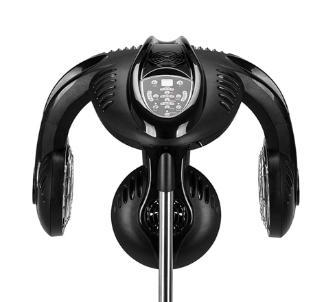 Futuristický kryt z odolného plastu v odtieňoch čiernej farby dodáva zariadeniu moderný a jedinečný vzhľad, vďaka čomu je vhodné do väčšiny interiérov. Navyše je odolné a ľahko sa čistí. Stabilitu zabezpečuje štvorhviezdičková základňa, ktorá je vybavená kolieskami na zabezpečenie mobility. Trojnožka nastaviteľná v rozsahu 142-162 cm zaručuje pohodlnú obsluhu a prispôsobenie zariadenia individuálnym potrebám.