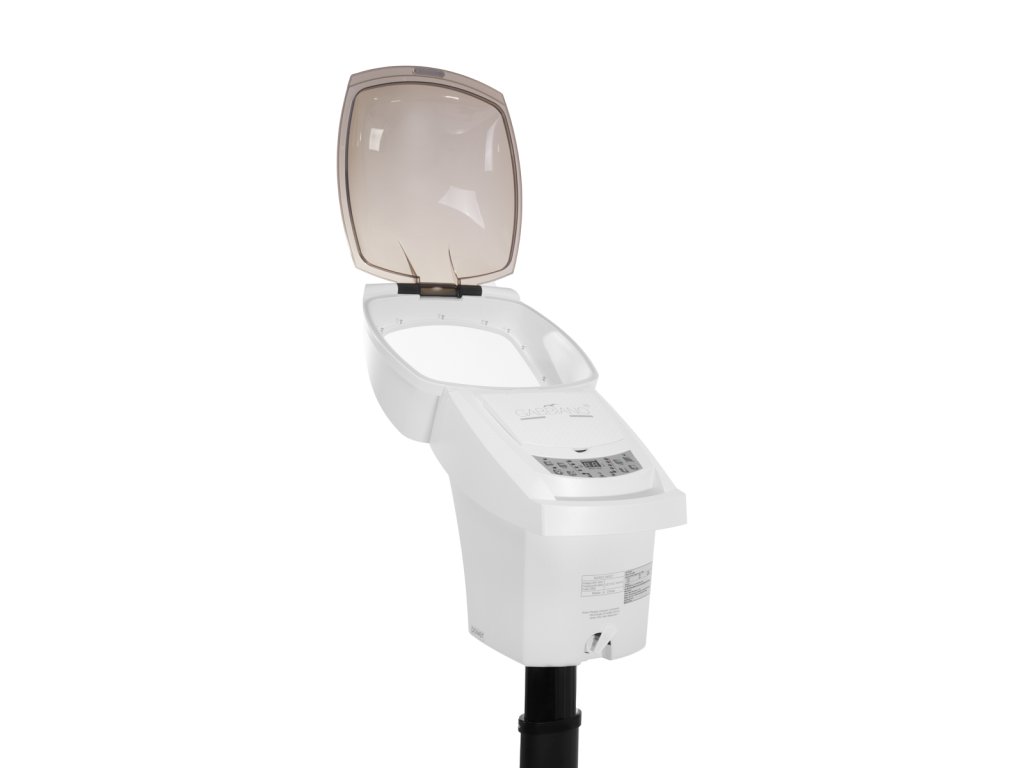 Vďaka bielemu plastovému krytu je spotrebič odolný a ľahko sa čistí. Otváracia kupola výrazne zlepšuje čistenie výrobku. Stojan s jednoduchým manuálnym nastavením v rozsahu 18 cm je vybavený podstavcom s praktickými kolieskami, vďaka čomu možno prístroj kedykoľvek ľahko premiestniť.