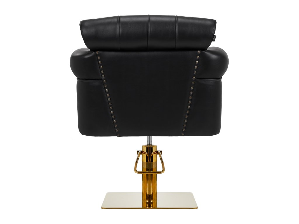 Pevná, plochá štvorcovázákladňa zaručuje stabilitu počas používania. Hladký povrch so zrkadlovou úpravou uľahčuje udržiavanie čistoty. Široké sedadlo s penovou výplňou zaručuje vysoký komfort používania a pohodlie aj počas dlhých hodín ošetrovania. Vybavenie kresla plnohodnotným otočným mechanizmom zefektívňuje a spríjemňuje prácu kaderníka. Podrúčky sú v správnej výške, čo umožňuje správnu polohu ramien klienta - takže klient nezabára hlavu do rúk ani sa nehrbí -, čo výrazne uľahčuje vykonávanie presných ošetrení vrátane strihania.