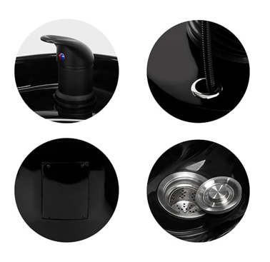 Primeraná hĺbka keramickej misy umývadla v odtieňoch čiernej farby zabraňuje nadmernému rozstrekovaniu vody a produktov používaných počas ošetrenia. Umožňuje tak pohodlné a efektívne vykonávanie širokého spektra služieb. Mobilita umývadla umožňuje jednoduché nastavenie uhla umývadla podľa individuálnych potrieb. Vďaka použitému materiálu je umývadlo odolné, odolné voči zašpineniu a poškriabaniu a veľmi ľahko sa udržiava v čistote. Vhodne tvarovaná príruba poskytuje optimálnu oporu a pohodlie pri umývaní vlasov a pohodlný plastový presah v čiernych tónoch zaručuje, že zákazník nebude pociťovať nepríjemnosti studeného keramického povrchu.