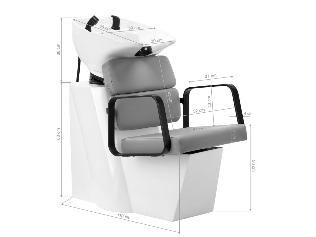 Prakticky mycia box je vybavená zmiešavacou batériou, ktorá zabezpečuje jednoduchý prístup k teplej a studenej vode. Vďaka tomu je možné ľahko prispôsobiť teplotu podľa individuálnych preferencií zákazníka. Vyhradené miesto na zavesenie slúchadla uľahčuje prácu a pochrómovaná zátka so špeciálnym sitkom umožňuje regulovať prietok vody a udržiavať vysoké hygienické štandardy v salóne. Vodovodná prípojka je umiestnená vo vnútri základne , čo umožňuje jednoduché skrytie potrubia. Významnou výhodou tohto modelu je otvor ponechaný medzi operadlom a sedadlom , ktorý uľahčuje udržiavanie čistoty v salóne a umožňuje ľahko vymetať nečistoty z každého kúta kresla. Umývací box bol navrhnutý tak, aby zabezpečil pohodlie počas rôznych procedúr a poskytoval dostatočnú oporu chrbta . Vďaka kombinácii funkčnosti a vybavenia je práca v kaderníckom salóne ešte pohodlnejšia .