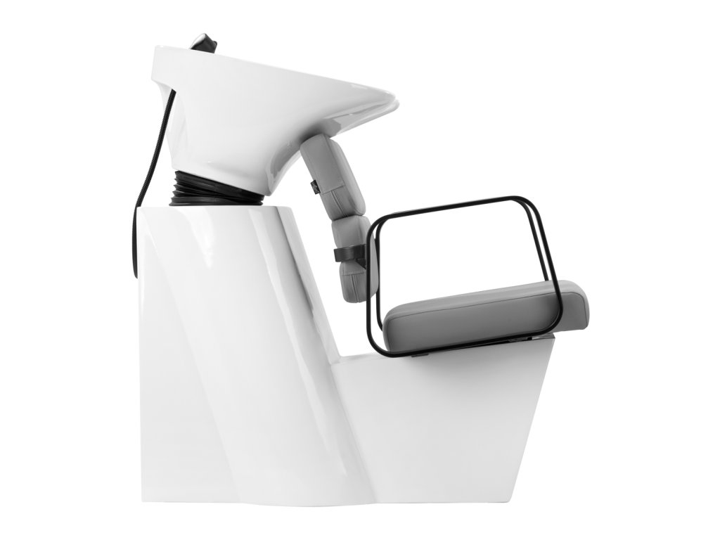Vhodná hĺbka bielej keramickej misy zabraňuje nadmernému rozstrekovaniu vody alebo produktov používaných počas ošetrenia. Uhol misy sa dá nastaviť, takže ju možno ľahko prispôsobiť individuálnym potrebám. Vďaka vysokej kvalite použitých materiálov je umývadlo odolné, odolné voči zmene farby a poškriabaniu a veľmi ľahko sa čistí. Správne vyprofilovaný golier a šikmé operadlo poskytujú oporu a pohodlie pri umývaní vlasov a vďaka pohodlnému čiernemu plastovému krytu zákazník nepocíti nepohodlie studeného keramického povrchu.