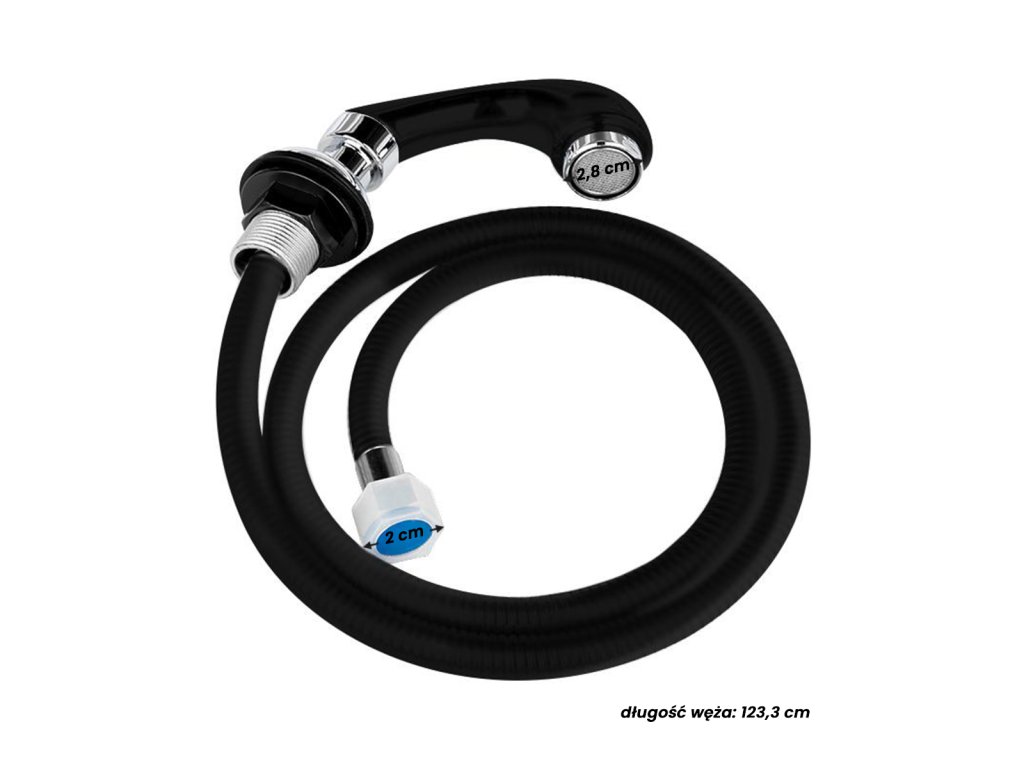 Štandardná ručná sprcha pre použitie v kaderníckych umývačkách. Vhodný pre väčšinu umývačiek áut predávaných v Poľsku.