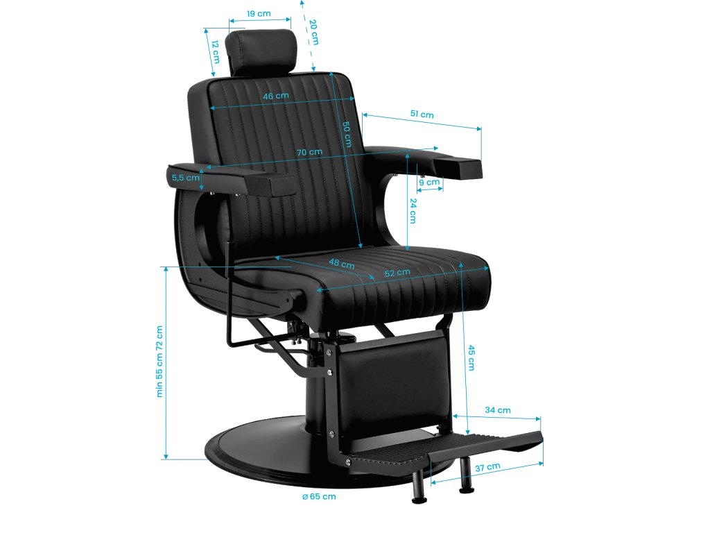 Holičské barber kreslo Cardinal – čierne je profesionálne barber kreslo určené na každodennú prevádzku v holičstvách a barbershopoch. Konštrukcia kresla je postavená na pevnej chrómovej základni, ktorá zabezpečuje vysokú stabilitu pri práci a bezpečné používanie aj pri plnom zaťažení.