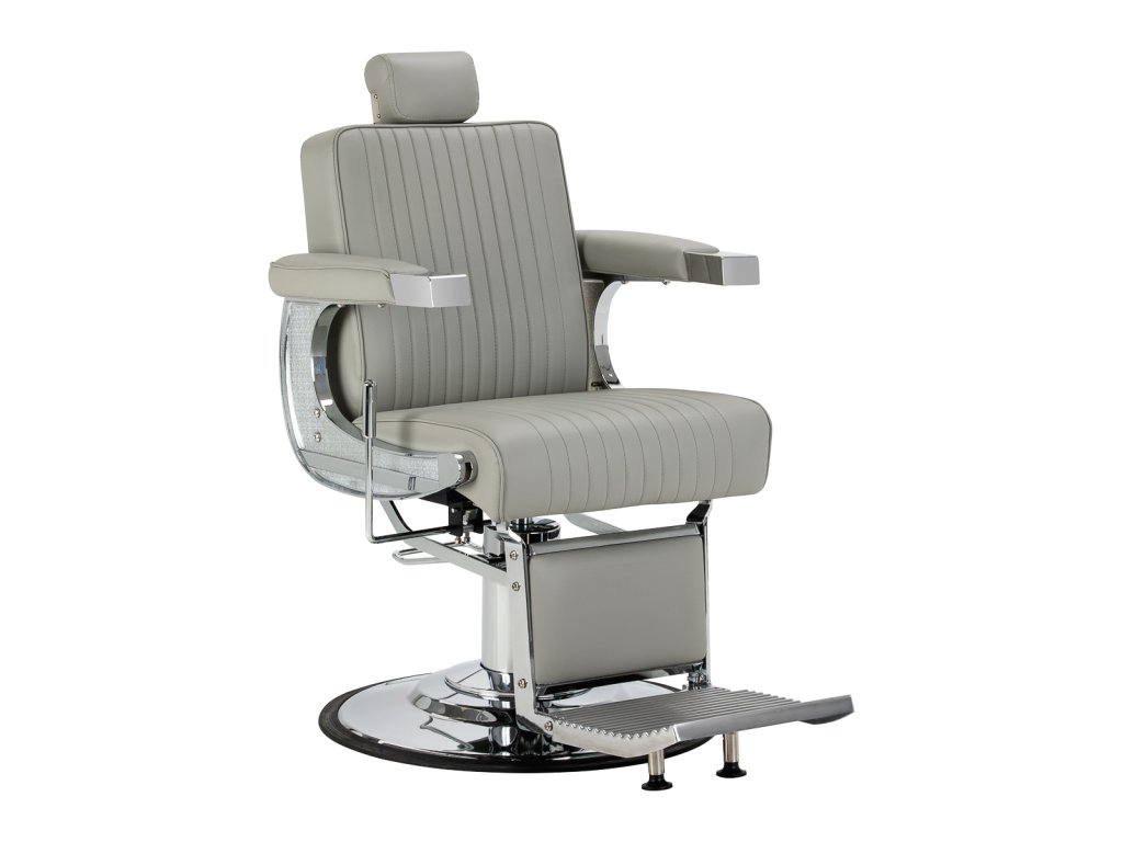 Holičské barber kreslo Cardinal – sivé je profesionálne barber kreslo určené na každodennú prevádzku v holičstvách a barbershopoch. Konštrukcia kresla je postavená na pevnej chrómovej základni, ktorá zabezpečuje vysokú stabilitu pri práci a bezpečné používanie aj pri plnom zaťažení.