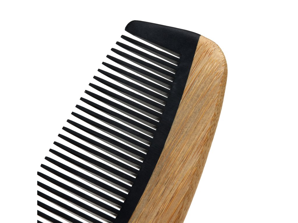 Ergonomicky tvarovaná zadná časť dodáva hrebeňu moderný vzhľad a zároveň zabezpečuje ľahké a pohodlné používanie. Bambus je vynikajúci materiál - ekologický a odolný, odolnejší voči vlhkosti ako drevo. Jemné zakrivenie zaisťuje bezpečné uchopenie a presné manévrovanie pri úprave vlasov na dosiahnutie profesionálnych výsledkov. Hrebeň má jemné, tesne rozmiestnené zuby v odtieňoch čiernej farby na jednoduché rozčesávanie. Zuby sú šetrné k vlasom, minimalizujú riziko poškodenia a zanechávajú pramene hladké a lesklé.