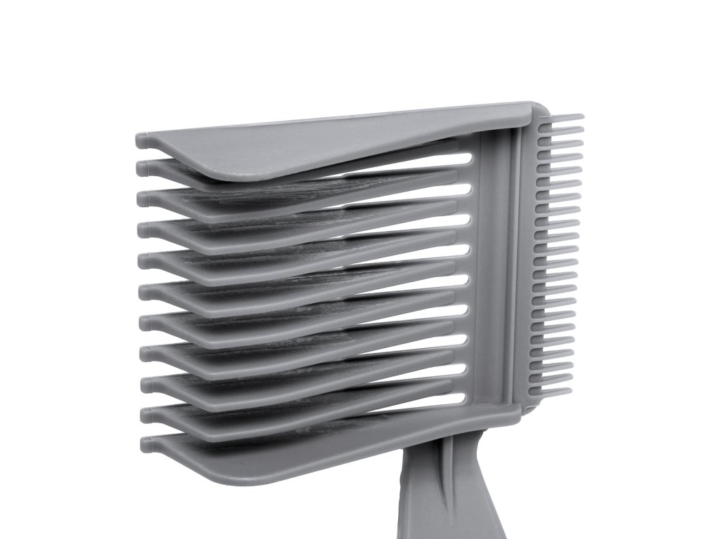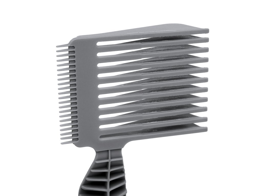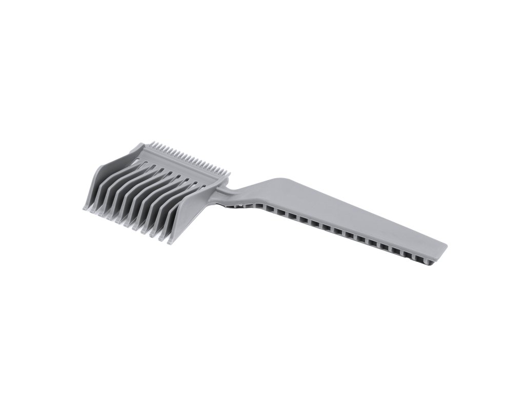 Hrebeň na tieňovanie je praktický nástroj, ktorý bol starostlivo navrhnutý na presné a zložité rezy a zaručuje prirodzený efekt tieňovania. Ergonomický tvar a presný dizajn umožňujú plynulé prechody a presné odstupňovanie dĺžky vlasov, takže je ideálny na vytváranie módnych účesov typu fade. Výrobok je vhodný pre profesionálov, ktorí sa usilujú o dokonalosť, ako aj pre tých, ktorí si cenia vysokú kvalitu a precíznosť v domácej starostlivosti o vlasy. Tento praktický nástroj je ideálny na strihanie a úpravu rôznych typov vlasov, pričom zaručuje presný a efektívny strih. Hrebeň je vyrobený z odolného plastu a ľahko sa čistí, čo z neho robí nepostrádateľný nástroj pre každého, kto sa snaží o dokonalosť v strihaní vlasov.