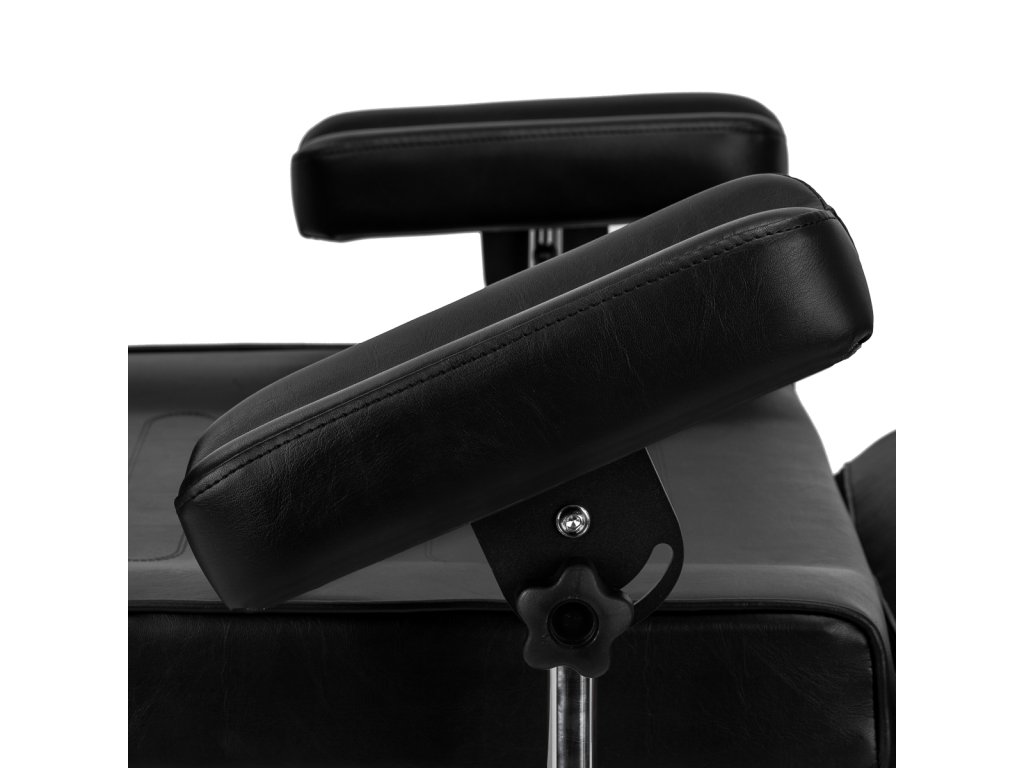 Veľkou výhodou sú odnímateľné a plne nastaviteľné podrúčky s ergonomickými výrezmi. Je možné nastaviť ich výšku, uhol a sklon, čím sa zabezpečí pohodlná a stabilná opora pre klienta a väčšia voľnosť pohybu pre tetovacieho umelca. Otočný mechanizmus s možnosťou aretácie uľahčuje prístup ku klientovi zo všetkých strán, aj v menších priestoroch.