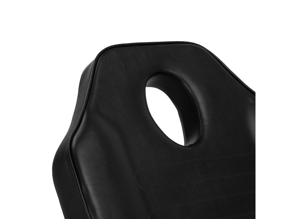 Stoličku je možné sklopiť do ležiacej polohy, pričom otvor na tvár je skrytý pod mäkkým vankúšom v opierke hlavy – ideálne pre procedúry vykonávané v ležiacej polohe. Stabilná konštrukcia s robustnou základňou zaisťuje bezpečné a pevné uchytenie, zatiaľ čo integrované kolieska v jednej časti základne umožňujú ľahké manévrovanie bez nutnosti zdvíhať celú stoličku.