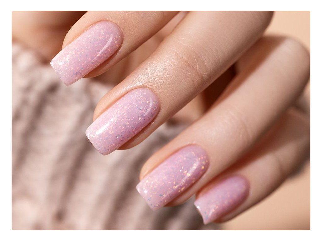 Jemný růžový odstín s shimmerem a fóliovým efektem