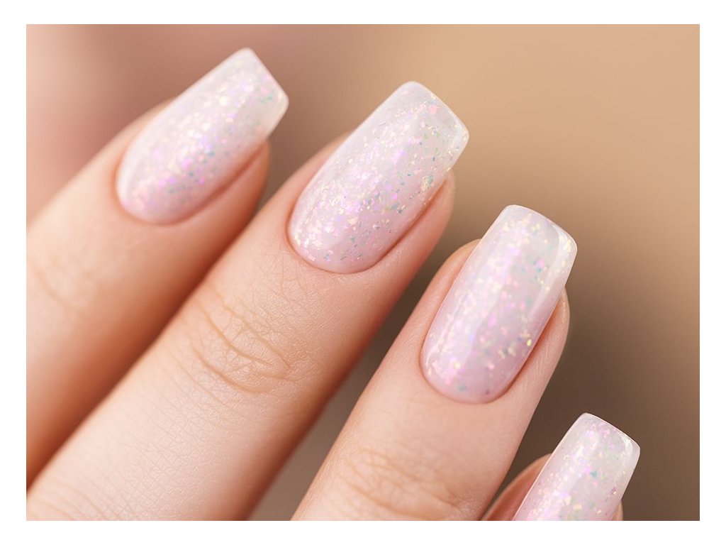 PRODUCT FEATURES: Consistency: thick, self-leveling Color: semi-transparent with a shiny flakes effect Type of nail plate: any Use: hybrid manicure Apex construction: yes Dispersion layer: yes Soluble in acetone: yes ADVANTAGES: Ensures durability and adhesion of the nail styling Flexible, resistant to mechanical damage Fills in all unevenness of the nail plate Perfect for infills Doesn’t run and flood the cuticles Natural manicure with the use of just a base and top coat CURING: Type of lamp: UV/LED 36 W, curing time: 60 sec. REMOVAL: acetone, nail file, nail drill