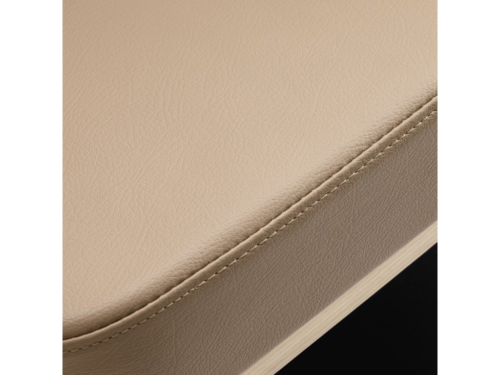 Čalúnenie z kvalitnej syntetickej kože v béžovom odtieni je odolné voči vlhkosti, jednoducho sa čistí a zachováva si svoj elegantný vzhľad. Stabilná okrúhla základňa v matnej čiernej farbe zaisťuje pevnosť a stabilitu aj pri intenzívnom používaní.