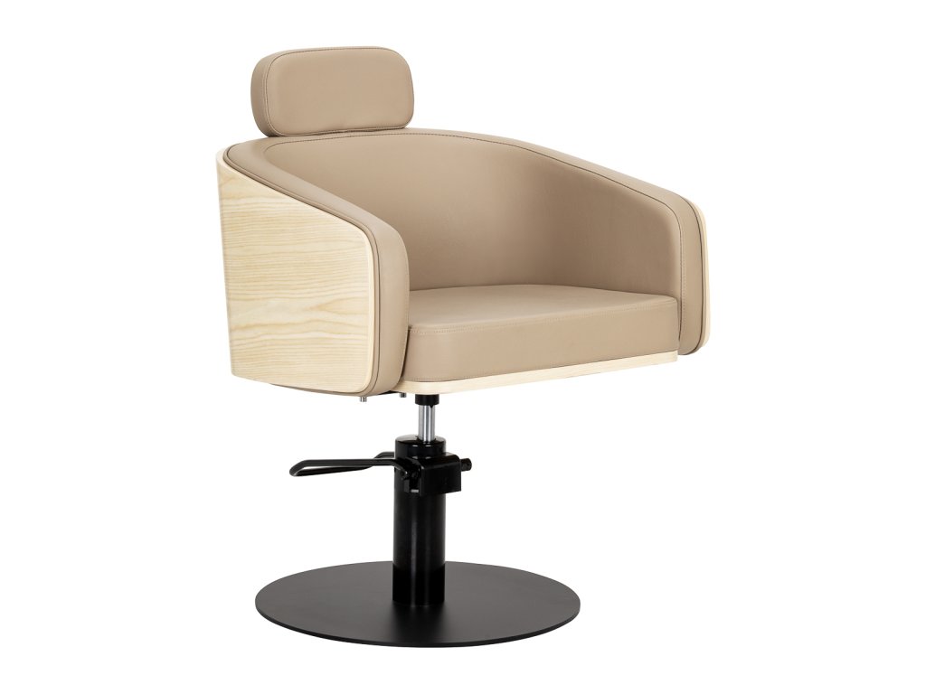 Kadernícke kreslo Elegant Beige vďaka kombinácii béžového čalúnenia, drevených detailov a čiernej základne pôsobí nadčasovo a štýlovo. Perfektne zapadne do moderných aj klasických kaderníckych a barberských salónov, kde je nielen praktickým vybavením, ale aj elegantným doplnkom interiéru.