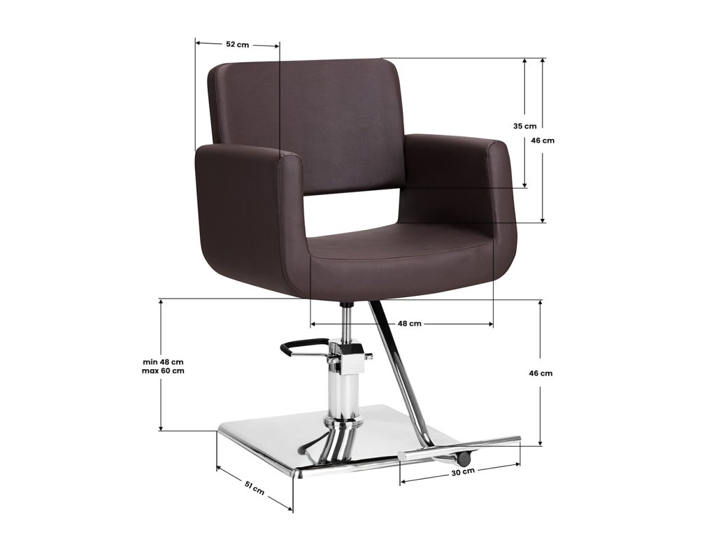 Moderná kadernícka stolička s jedinečným dizajnom, ideálny pre moderné salóny. Špeciálne tvarovaný tak, aby poskytoval klientovi pohodlnú polohu počas liečby. Nastaviteľné vo zvislej rovine. Veľmi stabilne vyrobené. Čalúnenie z vysoko kvalitnej, hladké ekokože. Hnedá farba.