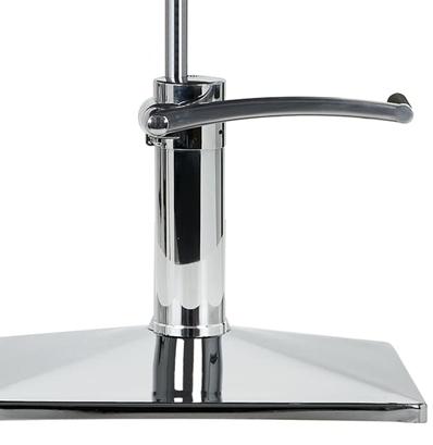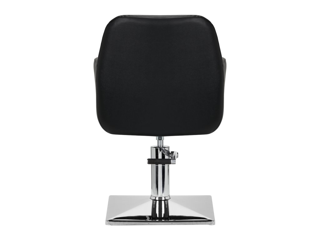 Pevná kruhová základňa zaručuje stabilitu počas používania. Vďaka hladkému povrchu so zrkadlovou úpravou sa tento predmet ľahko udržiava v čistote. Sedadlo s penovou výplňou zaručuje vysoký komfort používania a pohodlie aj počas dlhých procedúr. Mechanizmus plného otáčania zefektívňuje a spríjemňuje prácu kaderníka. Opierky na ruky umiestnené v správnej výške umožňujú správnu polohu ramien klienta - vďaka tomu klient nemusí zaboriť hlavu do ramien alebo sa hrbiť - čo výrazne uľahčuje vykonávanie precíznych ošetrení vrátane strihania.