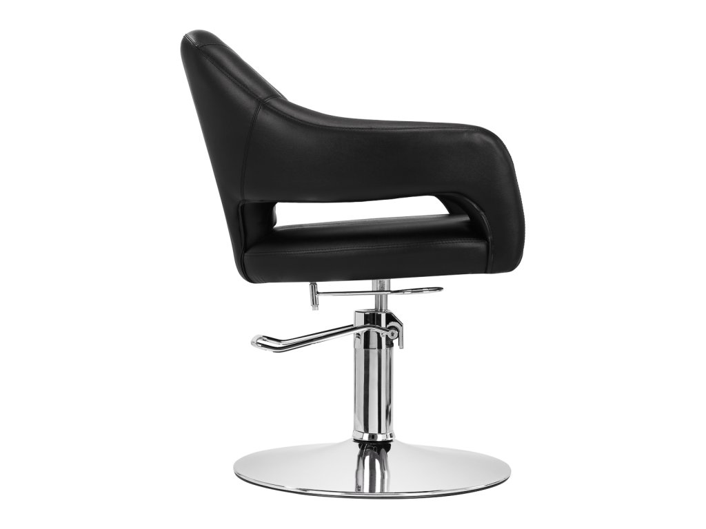 Pevná okrúhla základňa zaručuje stabilitu pri používaní. Leštený, hladký povrch dodáva prvku elegantný vzhľad a uľahčuje jeho údržbu. Pohodlné sedadlo zaručuje vysoký komfort používania aj počas viachodinových procedúr. Mäkké opierky rúk so zaujímavým tvarom umožňujú správne polohovanie ramien klienta - to znamená, že nezakopávajú hlavu do ramien ani sa nehrbia - čo výrazne uľahčuje vykonávanie presných ošetrení vrátane strihania vlasov. Plne otočný mechanizmus kresla zefektívňuje a spríjemňuje prácu kaderníka.