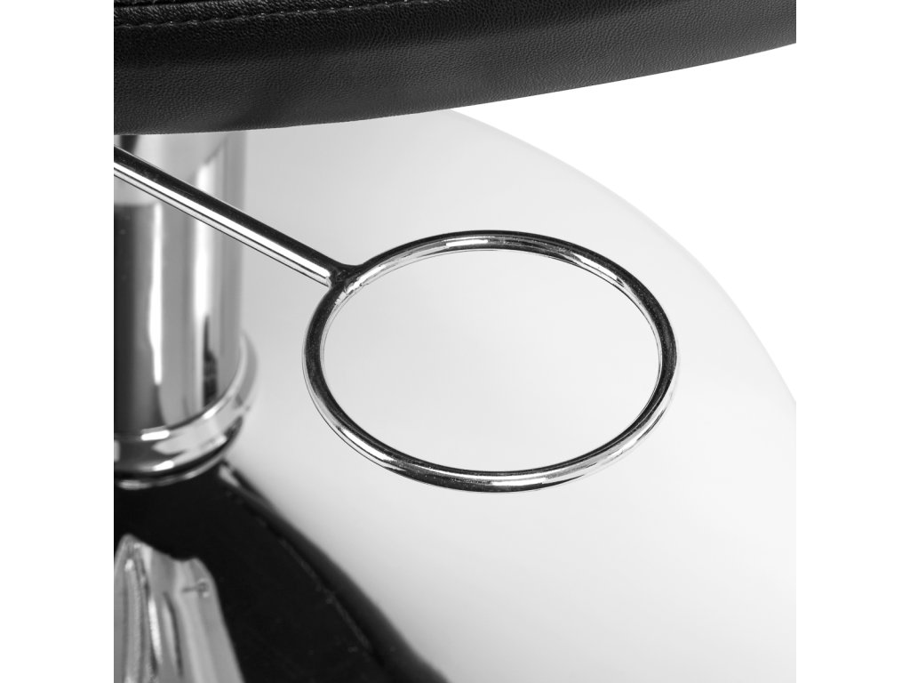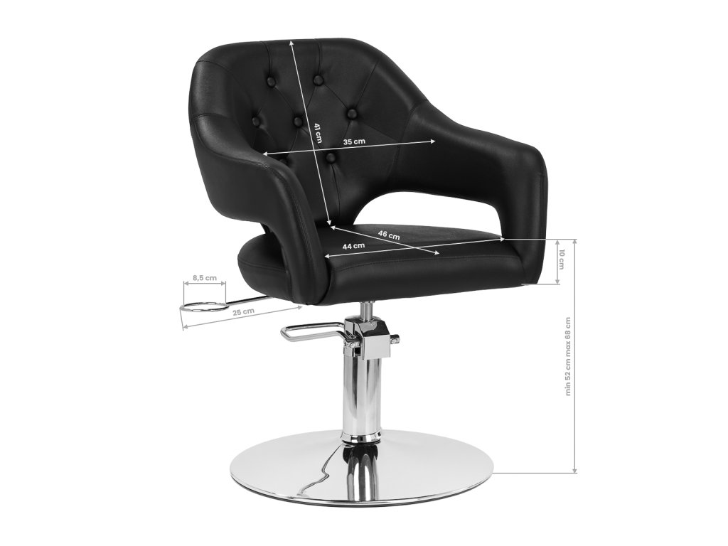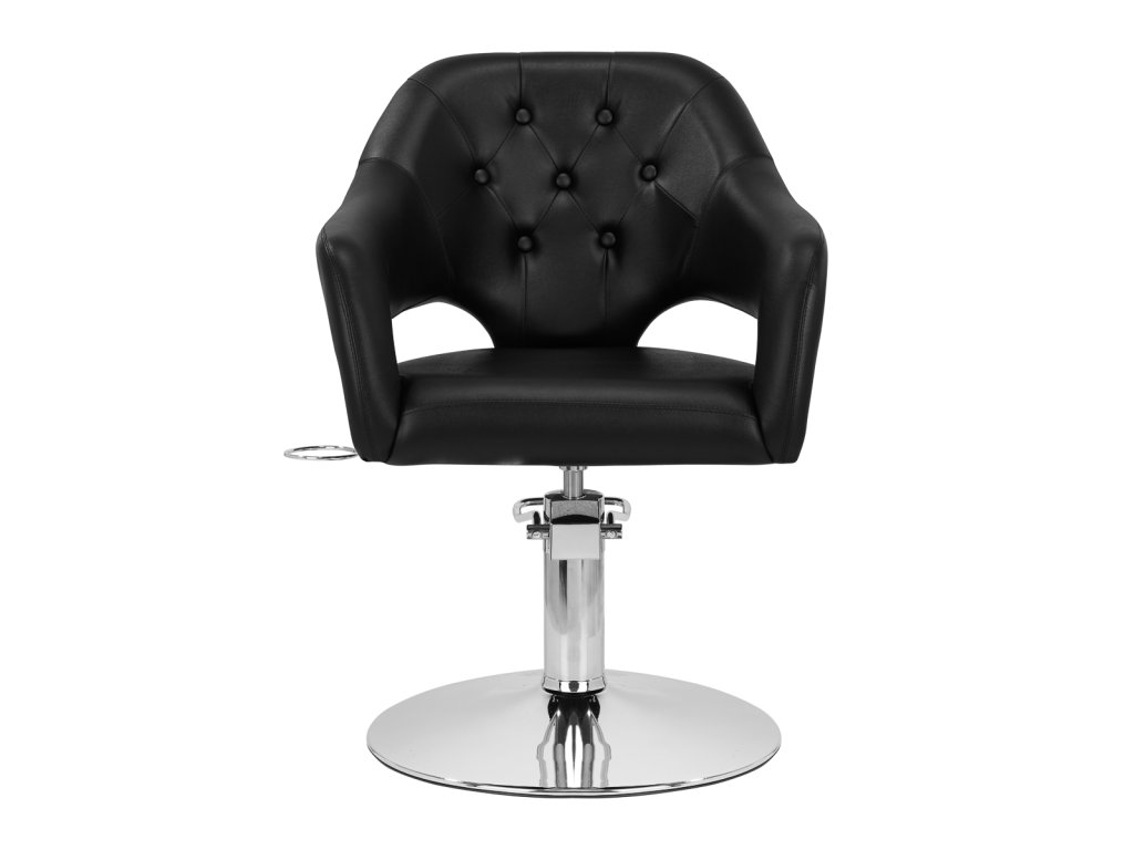 Pevná okrúhla základňa zaručuje stabilitu pri používaní. Leštený, hladký povrch dodáva prvku elegantný vzhľad a uľahčuje jeho údržbu. Pohodlné sedadlo zaručuje vysoký komfort používania aj počas viachodinových procedúr. Mäkké opierky rúk so zaujímavým tvarom umožňujú správne polohovanie ramien klienta - to znamená, že nezakopávajú hlavu do ramien ani sa nehrbia - čo výrazne uľahčuje vykonávanie presných ošetrení vrátane strihania vlasov. Plne otočný mechanizmus kresla zefektívňuje a spríjemňuje prácu kaderníka.