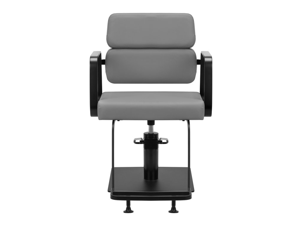 Mechanizmus úplného otáčania kresla zefektívňuje a spríjemňuje prácu kaderníka. Pevná, plochá základňa štvorcového tvaru zaručuje stabilitu počas používania. Matný, hladký povrch dodáva prvku elegantný vzhľad a uľahčuje jeho údržbu. Pohodlné sedadlo s penovým polstrovaním zabezpečuje vysoký komfort používania aj počas viachodinových ošetrení. Geometrické kovové podrúčky umožňujú správnu polohu ramien klienta - to znamená, že nezakopávajú hlavu do ramien ani sa nehrbia -, čo výrazne uľahčuje vykonávanie presných ošetrení vrátane strihania vlasov. Štýlová opierka nôh navrhnutá pre tento model poskytuje stabilnú oporu pre nohy používateľa.