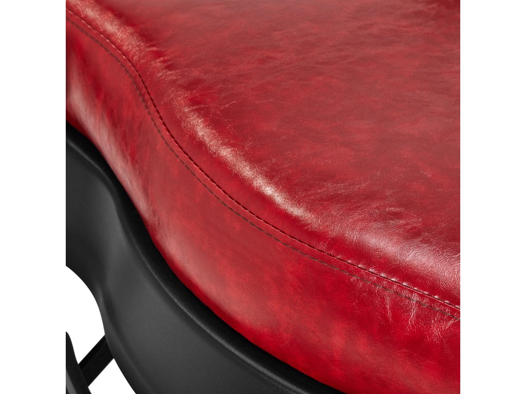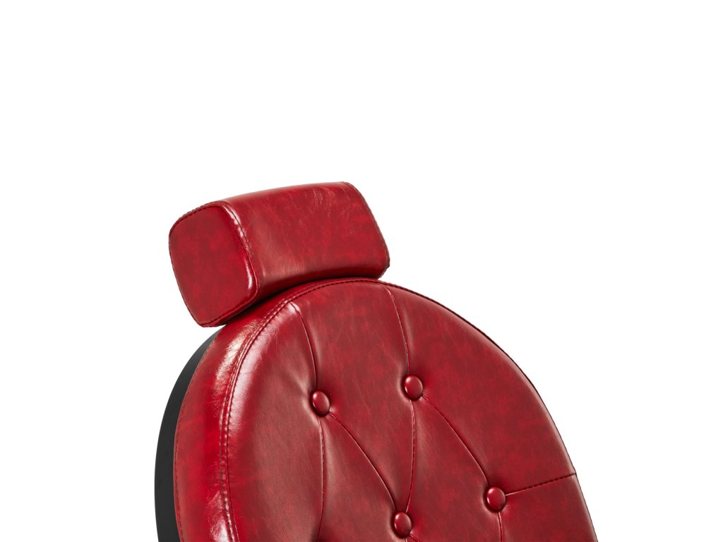 Pevná základňa zaručuje stabilitu a vysoký komfort používania. Výplň sedadla je vyrobená z odolnej peny odolnej voči deformácii a čalúnenie je z na dotyk príjemnej syntetickej kože s matnou povrchovou úpravou s efektom starnutia, čo zaručuje odolnosť nábytku a jeho pohodlné používanie po dlhú dobu . Sivé čalúnenie s prešívaním a ozdobnými gombíkmi mu dodáva jedinečný charakter. Vďaka svojmu výraznému dizajnu odkazujúcemu na vintage štýl kreslo dokonale zapadá do atmosféry holičstiev a podčiarkuje ich jedinečnú atmosféru.