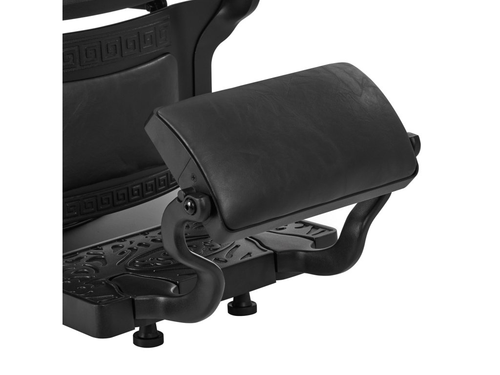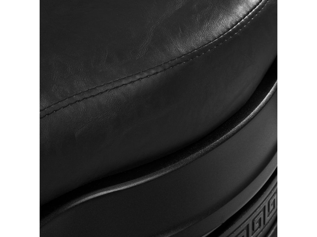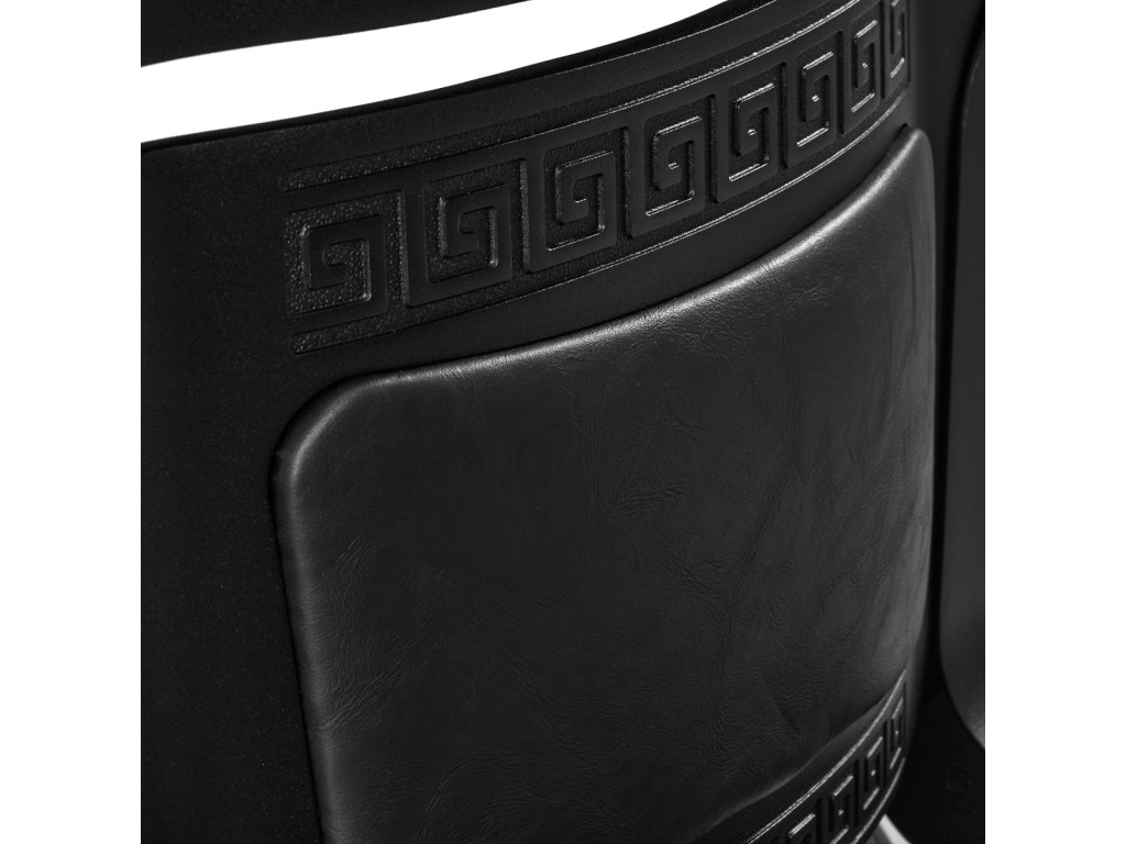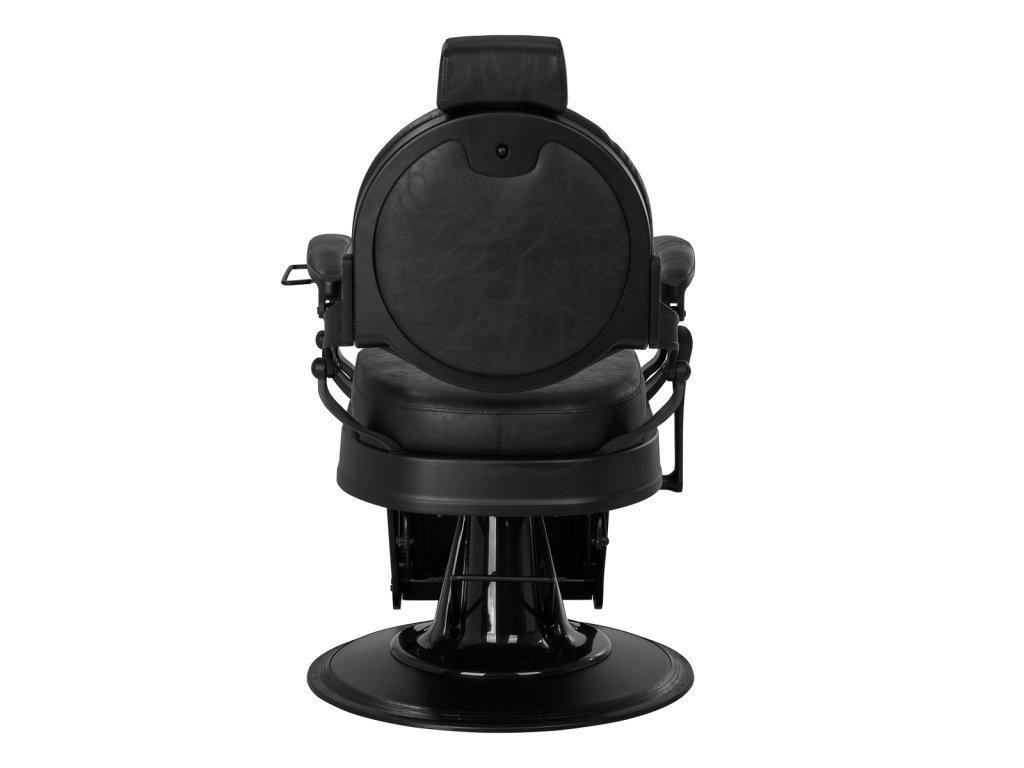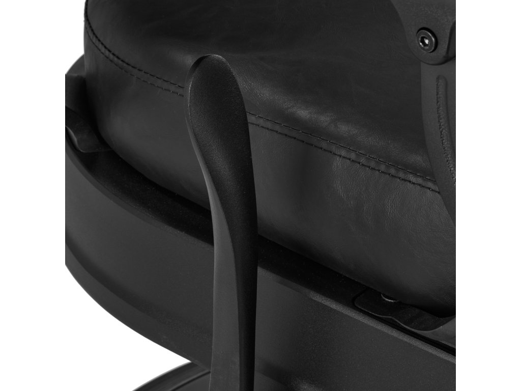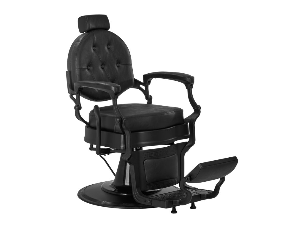 Pevná základňa zaručuje stabilitu a vysoký komfort používania. Výplň sedáku je vyrobená z odolnej peny odolnej voči deformáciám a čalúnenie je z na dotyk príjemnej syntetickej kože s polomatnou povrchovou úpravou, ktorá zabezpečuje odolnosť nábytku a jeho pohodlné používanie po dlhú dobu. Čierny poťah s prešívaním a ozdobnými gombíkmi mu dodáva jedinečný charakter. Vďaka svojmu výraznému dizajnu odkazujúcemu na vintage štýl kreslo dokonale zapadá do atmosféry holičstiev a podčiarkuje ich jedinečnú atmosféru.