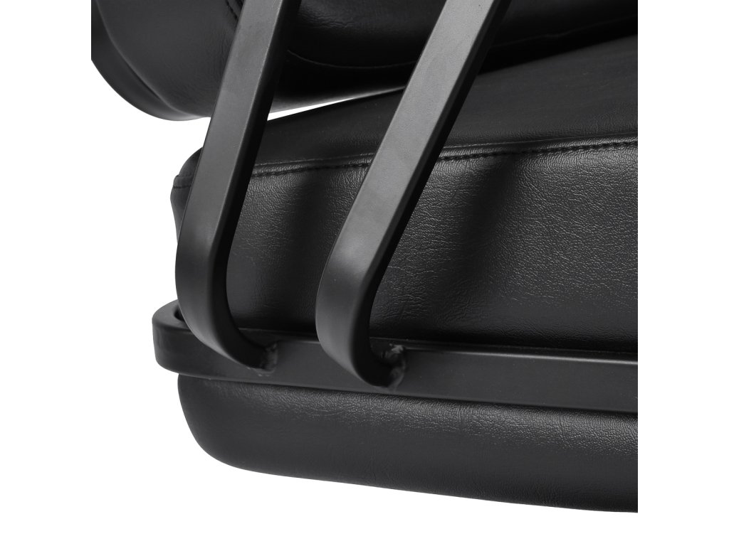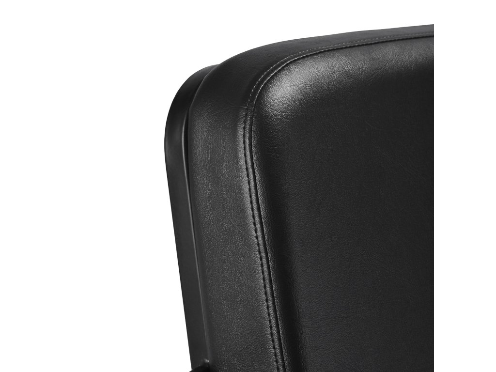 Čalúnenie zo syntetickej kože v čiernom prevedení je odolné voči vlhkosti, ľahko sa čistí a je vhodné na intenzívne salónne používanie. Výplň z kvalitnej peny si dlhodobo zachováva tvar a zabezpečuje komfort bez deformácií.