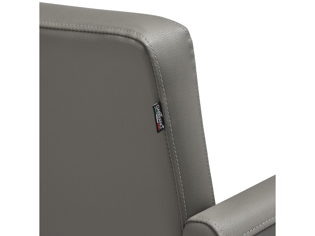 Čalúnenie z kvalitnej syntetickej kože je príjemné na dotyk, odoláva vlhkosti aj opotrebovaniu a je nenáročné na údržbu. Čierna okrúhla podstava dodáva kreslu stabilitu a elegantný vzhľad vhodný do moderných aj luxusných salónov. Kreslo má nosnosť 130 kg, čo potvrdzuje jeho vhodnosť na každodenné profesionálne využitie.