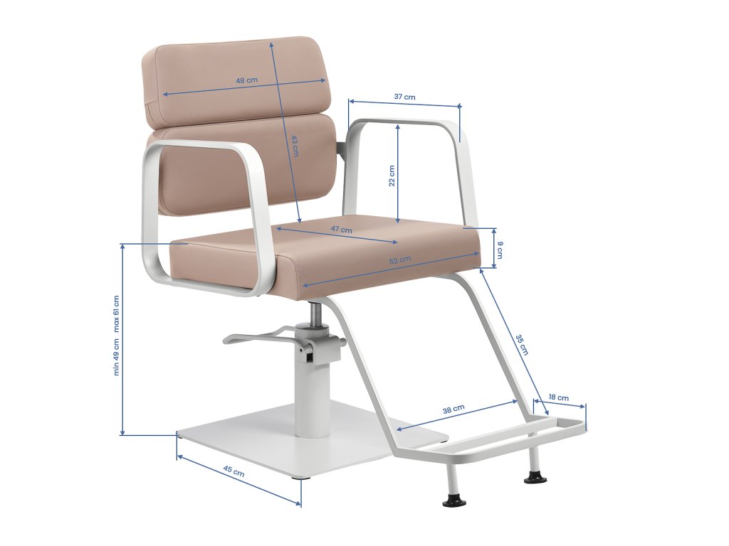 Vďaka hydraulickému zdvihu v rozsahu 49–61 cm je možné výšku kresla jednoducho prispôsobiť potrebám klienta aj kaderníka, a to aj v momente, keď je klient usadený. Plný otočný mechanizmus zaisťuje pohodlnú manipuláciu a efektivitu pri každodennej práci.
